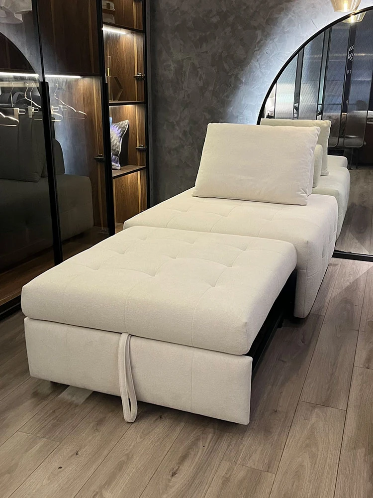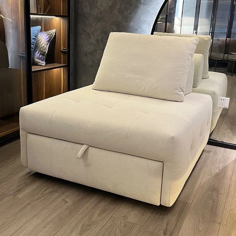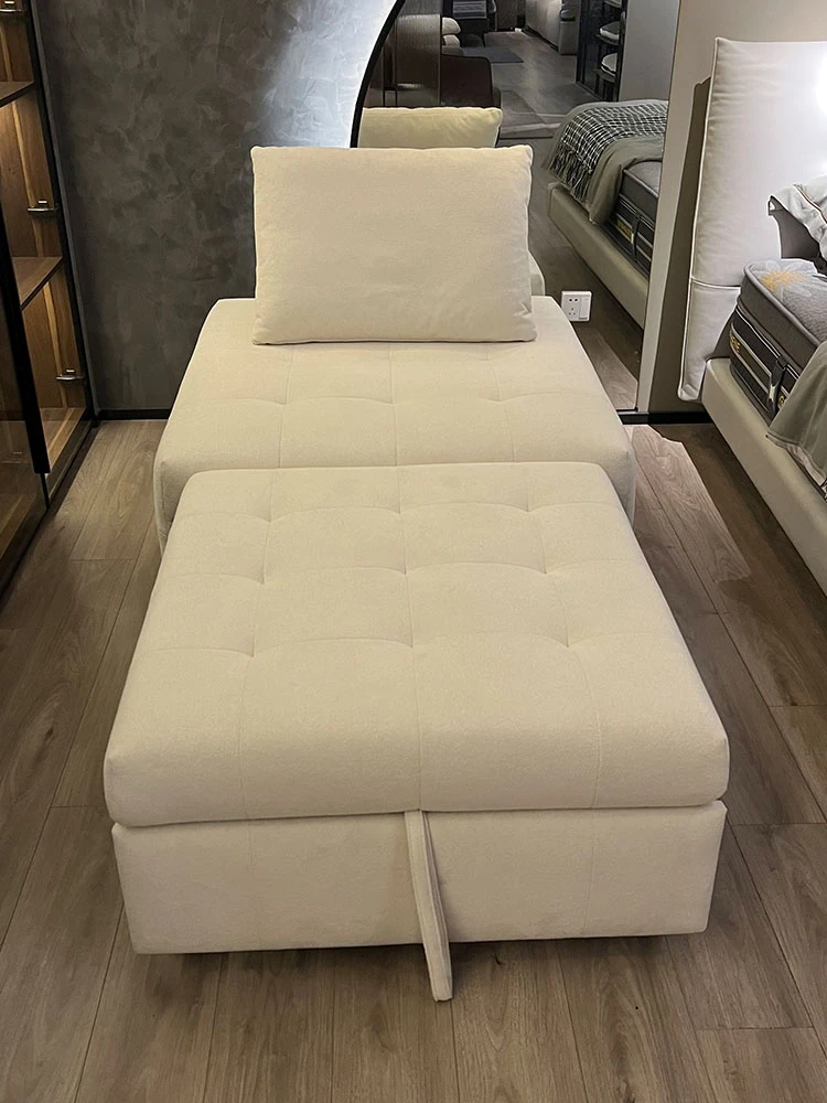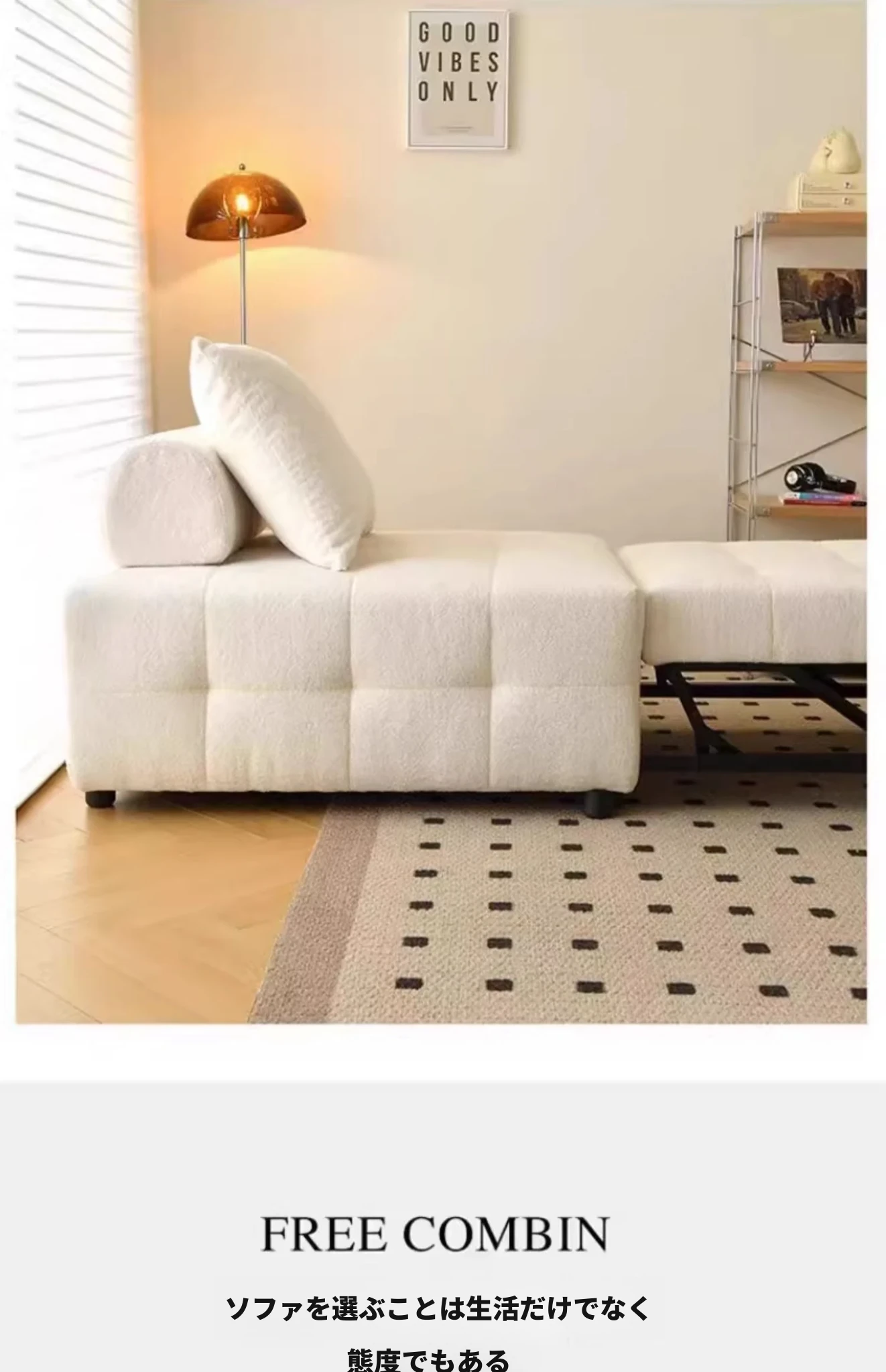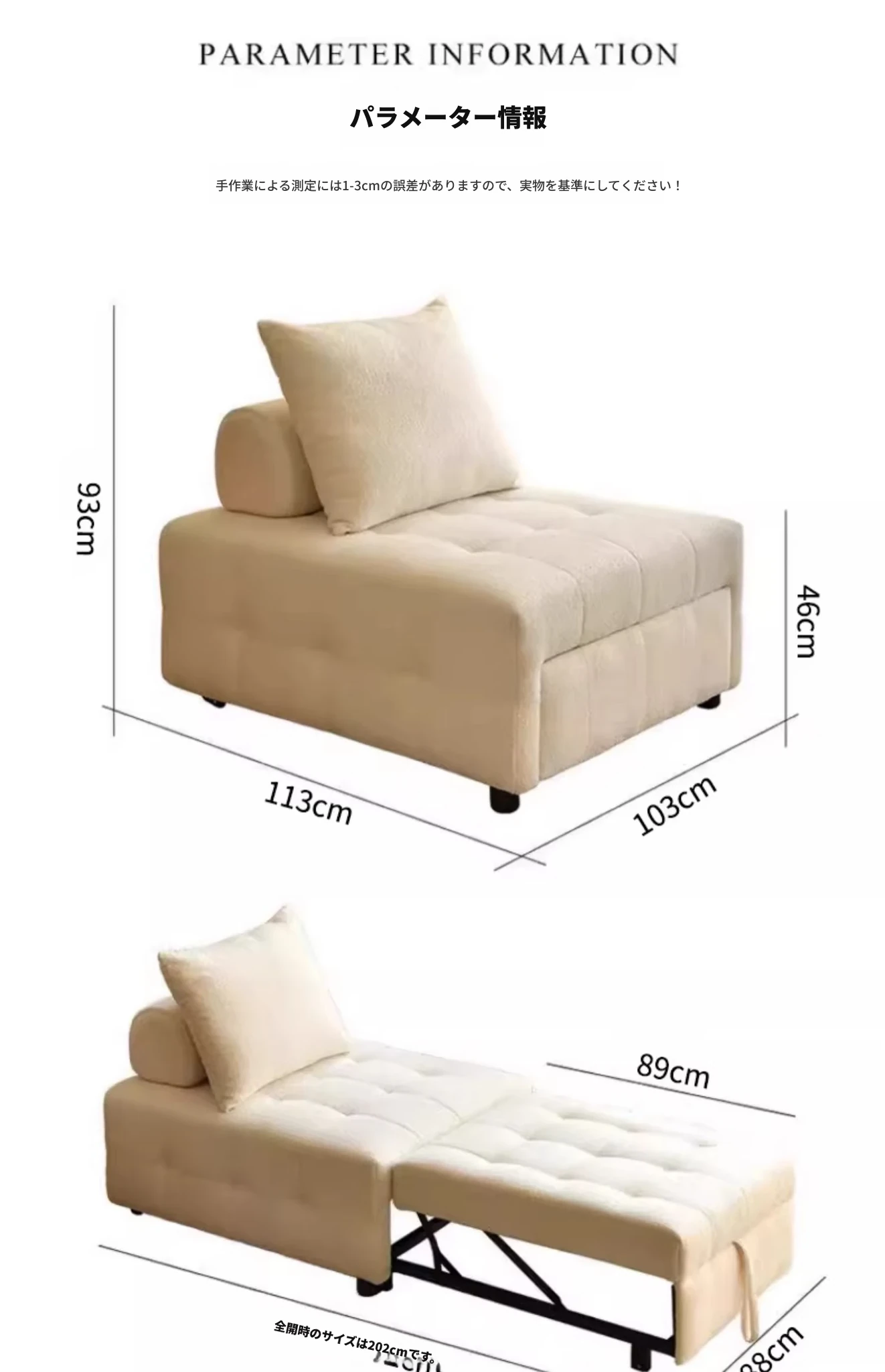 クリーム風の和風パフソファベッド!小型リビングにぴったりの多機能伸縮式シングルソファ&リクライニングチェア。おしゃれで快適な空間を演出し、リラックスできるひとときを提供します。