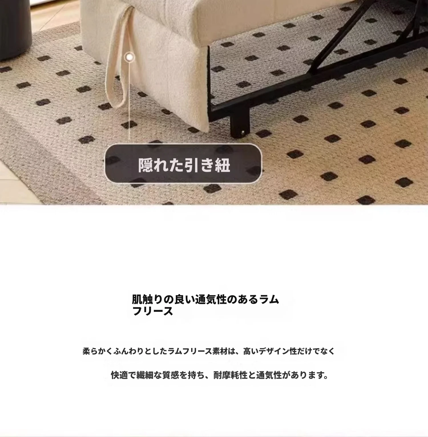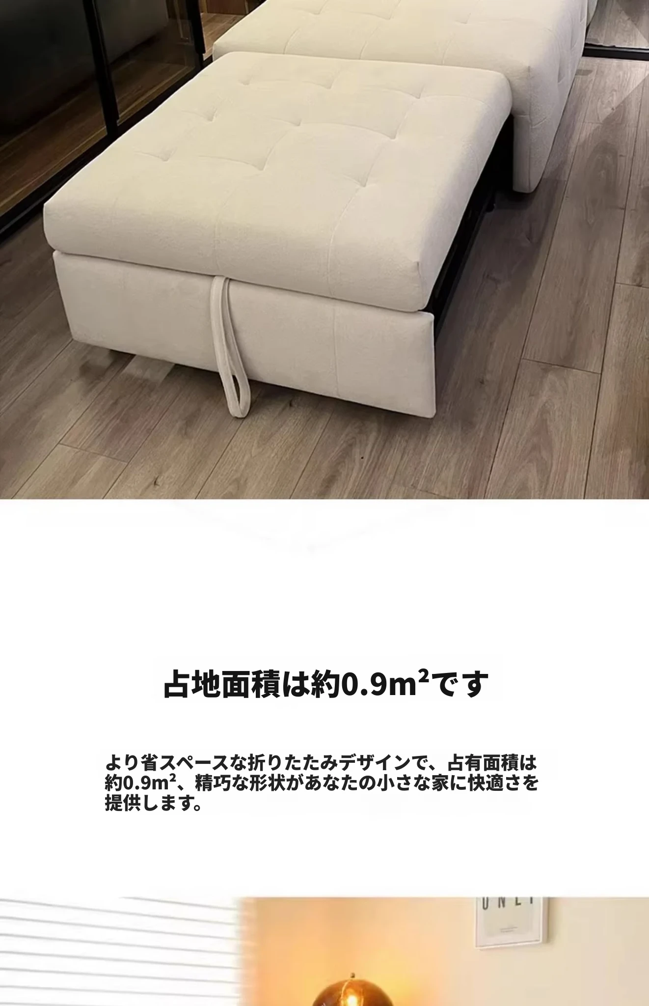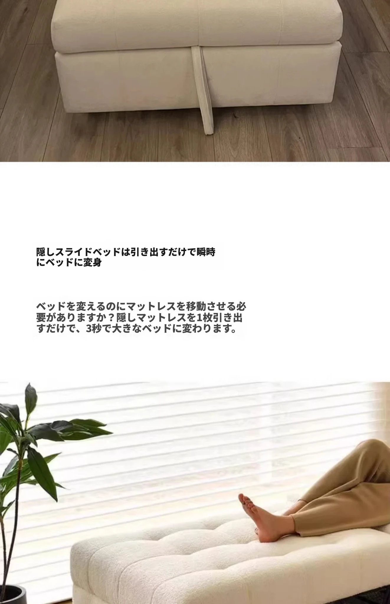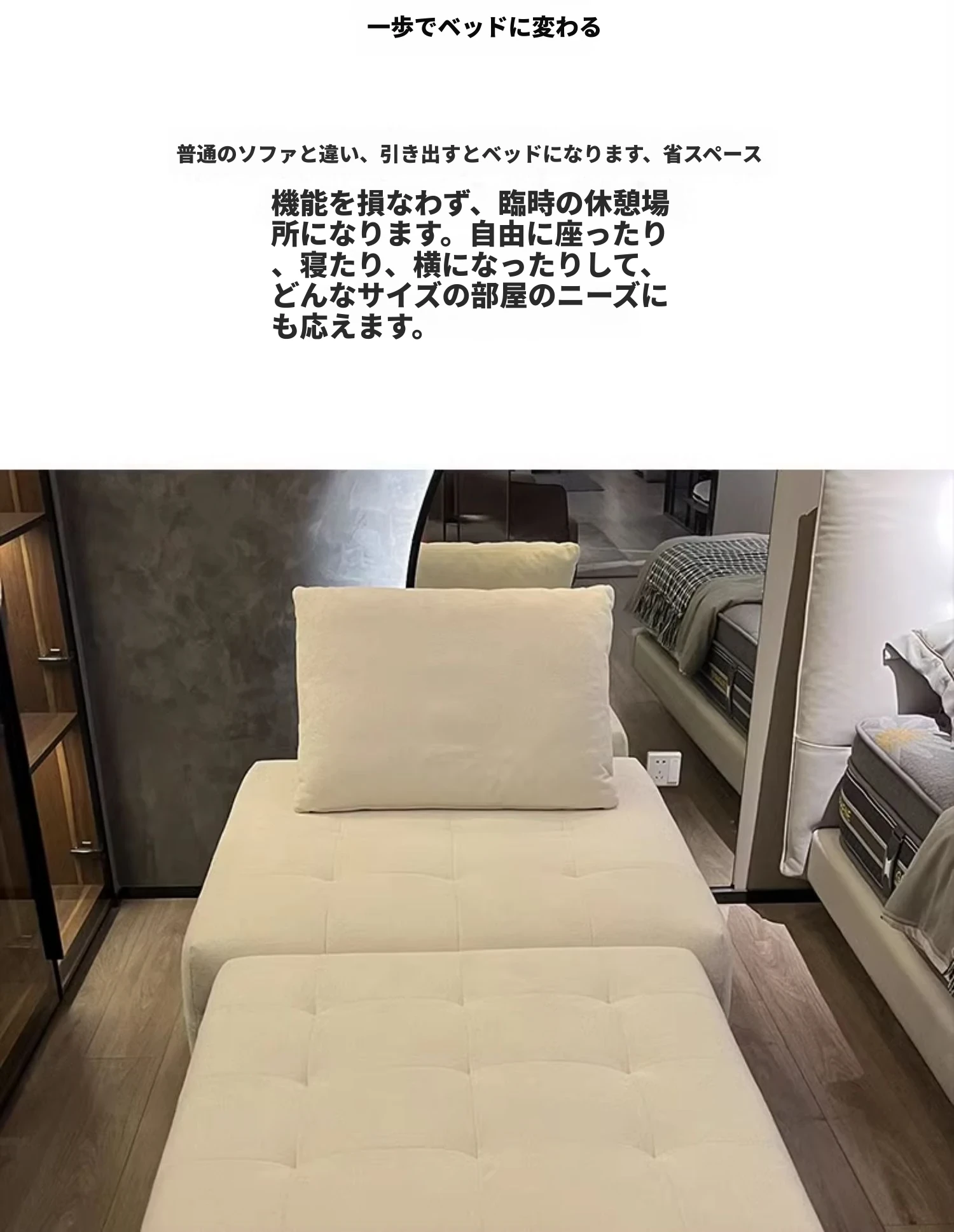 電動機能付きファブリックソファベッド|猫爪防止の柔らかいクリームカラー|小型スペースに最適!伸縮可能なデザインで、快適なリビング空間を演出します。