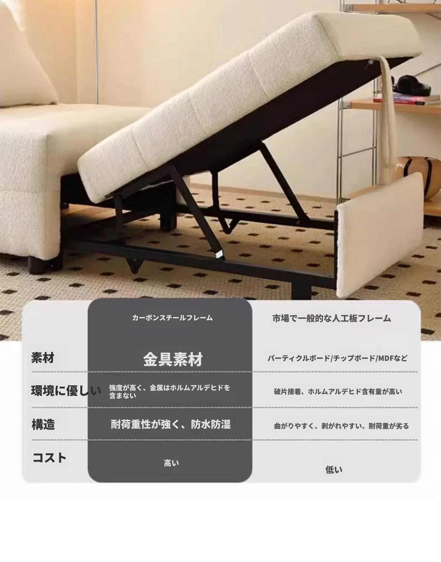 2024年新作!マイアミ高級折りたたみ式伸縮スマート電動マルチファンクションソファベッド - リビングにもぴったり!快適さとスタイルを兼ね備えた、あなたの生活空間を格上げする一品です!