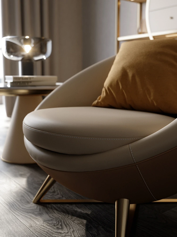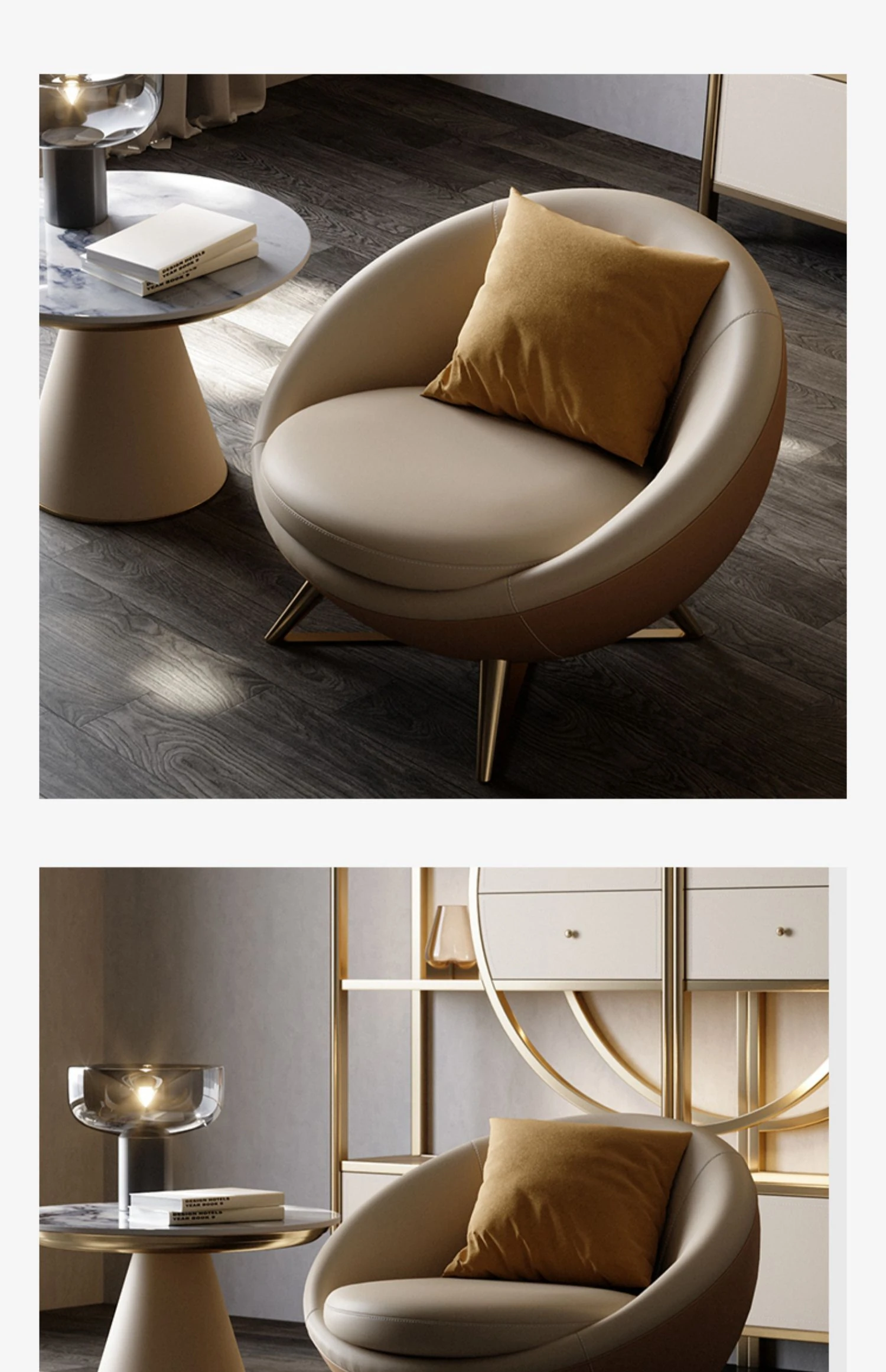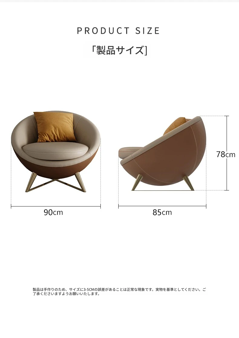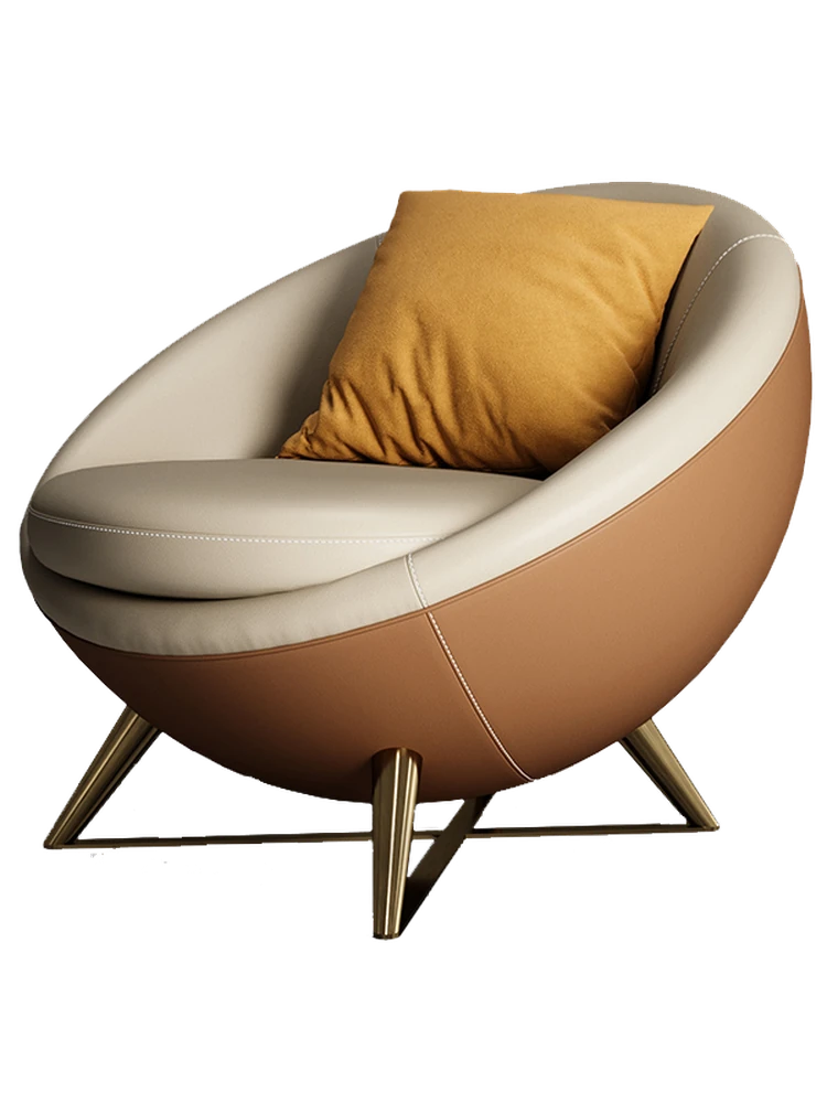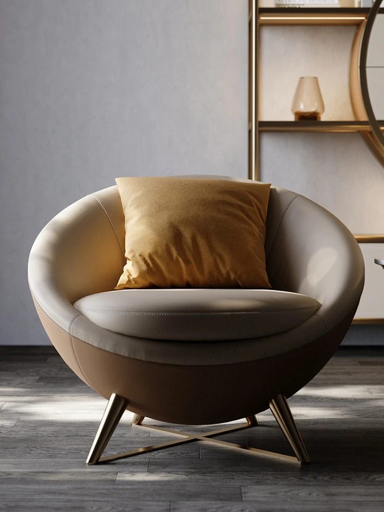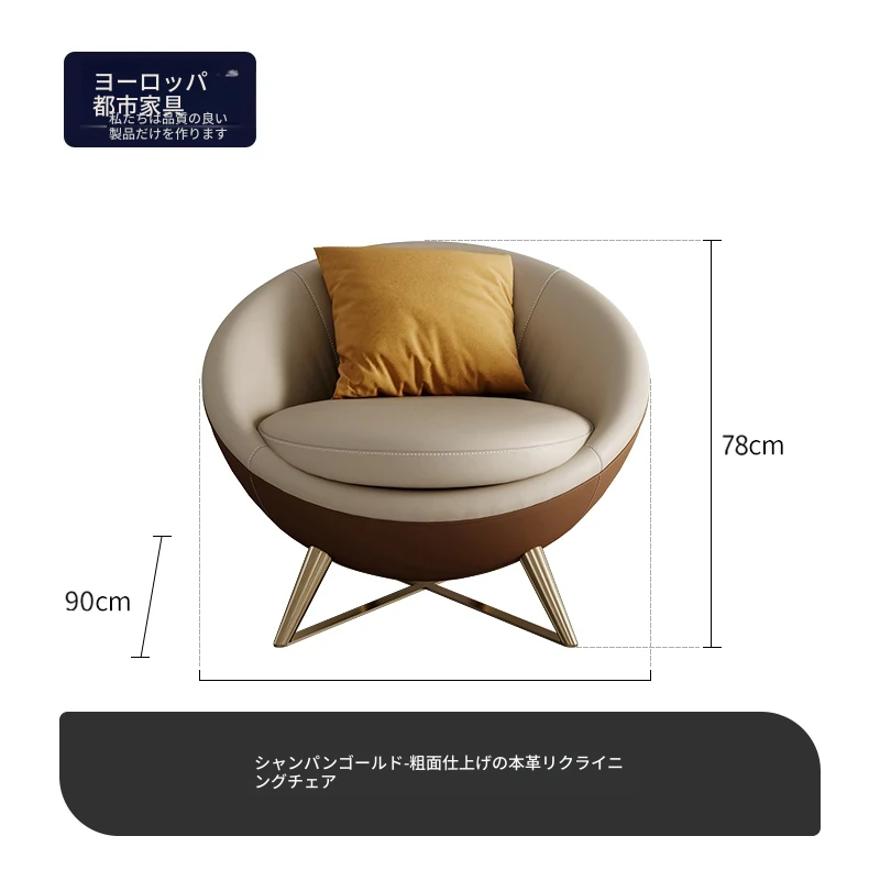 本革製のラグジュアリーなイタリアンミニマリストデザインのカジュアルチェア。小型リビングにも最適なクリエイティブな円形シングルソファ。上質な素材で心地よいひと時を演出します!