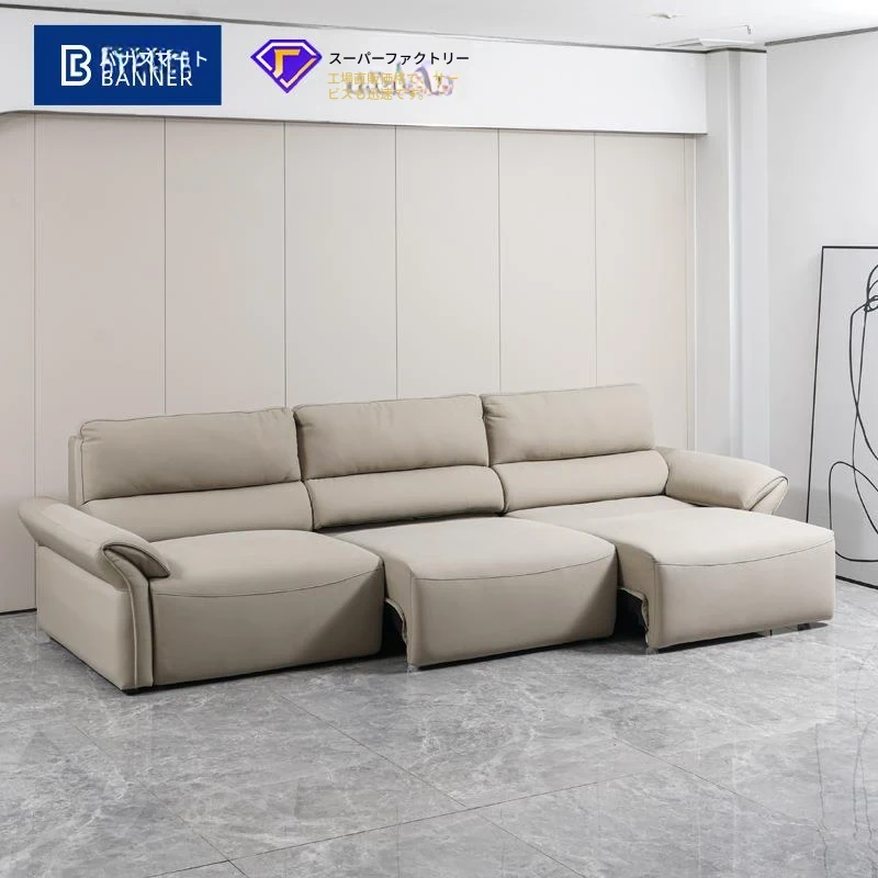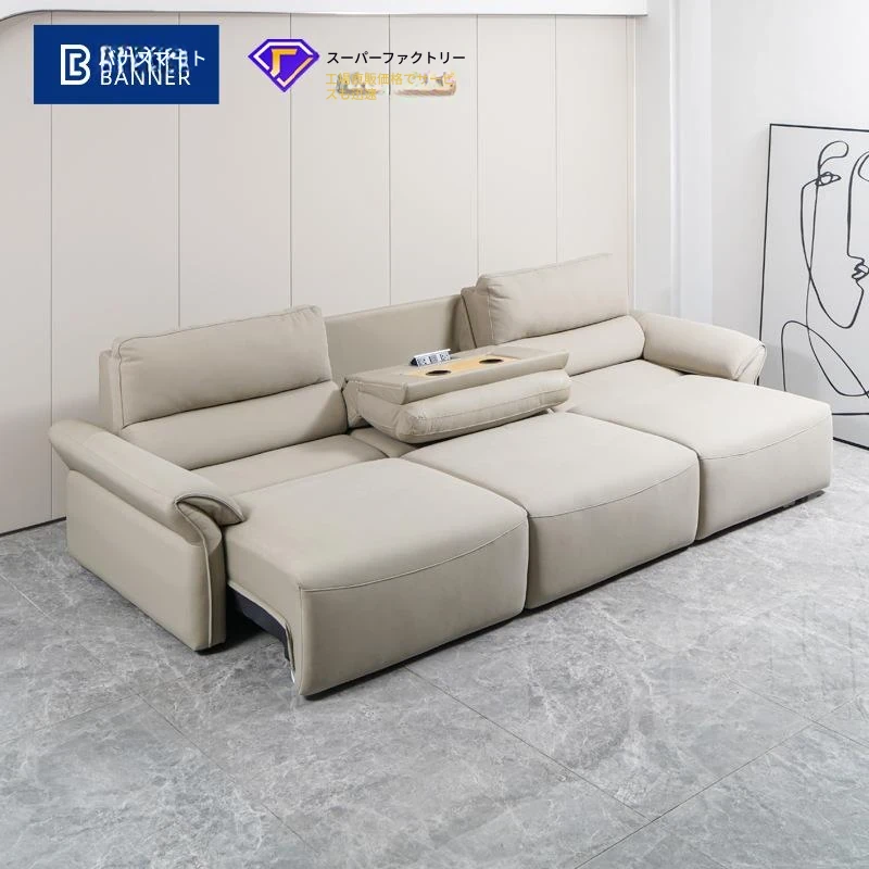 電動キャビネットモダンリビング用多機能ソファベッド 自動伸縮可能な背もたれ付きコーヒーテーブル 本革製ソファで、スタイリッシュな空間を演出します!