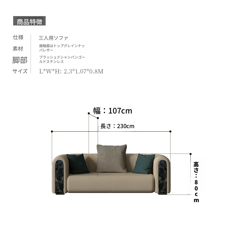 【接触面頭層ナッパレザー】三人用(シャンパンゴールド)