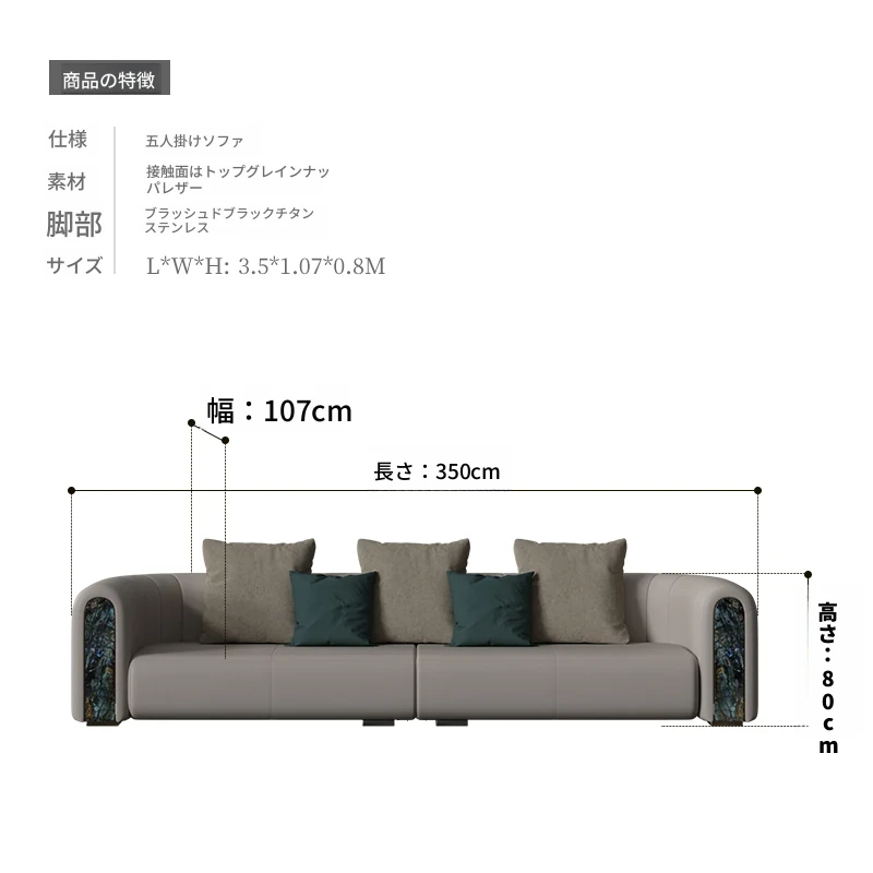 【接触面頭層ナッパレザー】五人用(ブラックチタン)