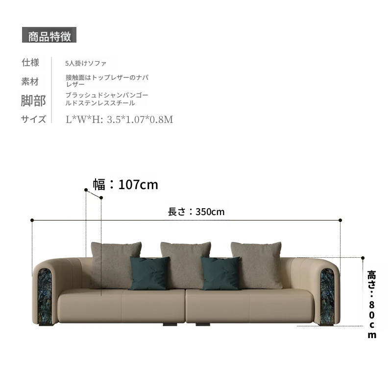 【接触面頭層ナッパレザー】五人用(シャンパンゴールド)