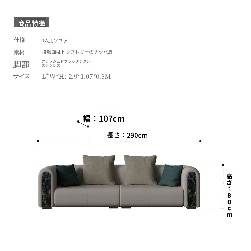 【接触面頭層ナッパレザー】四人用(ブラックチタン)