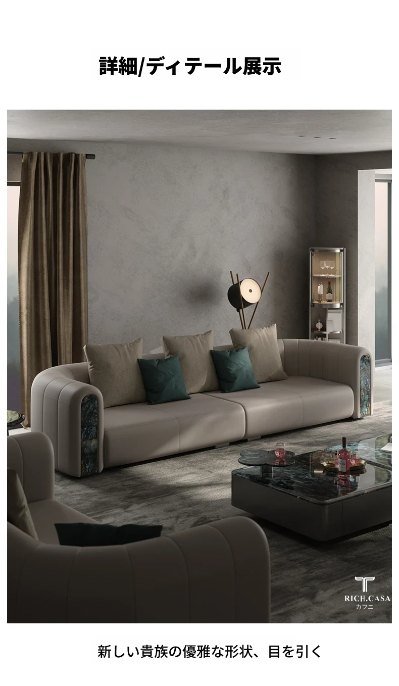 現代的ラグジュアリーソファ|イタリアンデザインの本革ソファ|高級トップグレード牛革使用|スリムでスタイリッシュな3人掛け|おしゃれなリビングに最適!