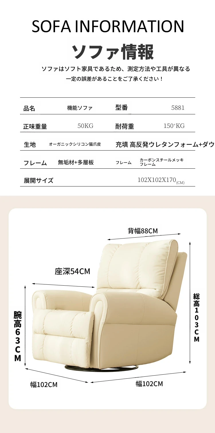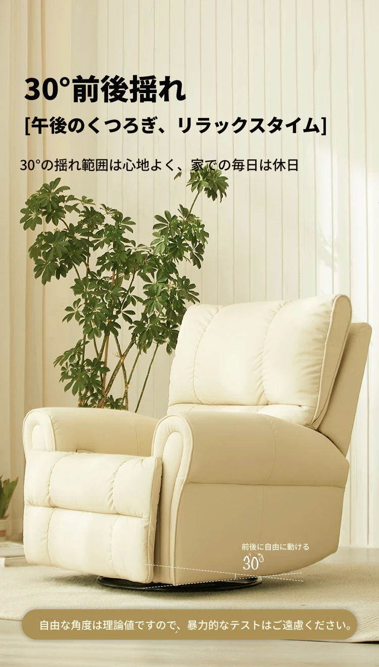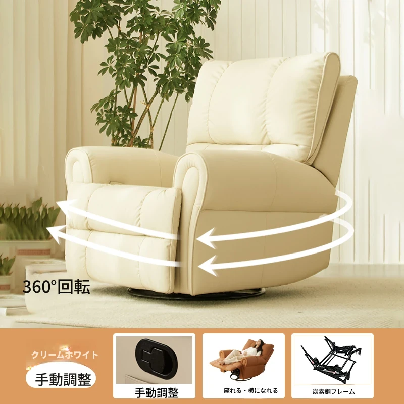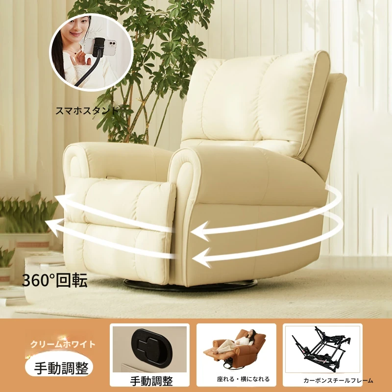 (クリームホワイト-キャットクラッチレザー)手動リクライニング+回転+スマホスタンド