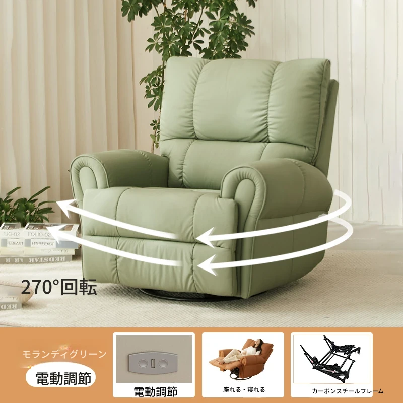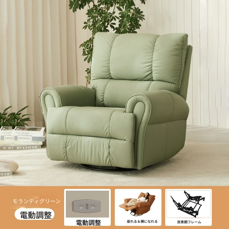 (モランディグリーン-キャットクラッチレザー)電動リクライニング+USB+回転