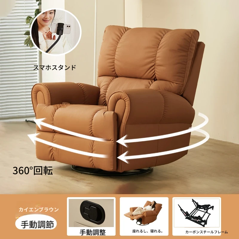 (カイエンブラウン-キャットクラッチレザー)手動リクライニング+回転+スマホスタンド