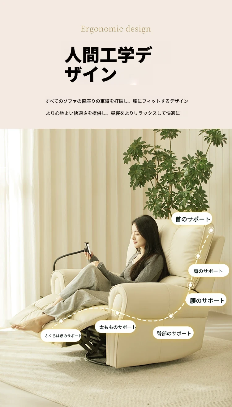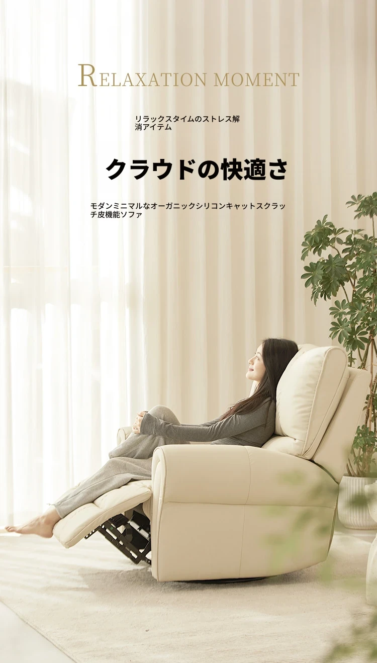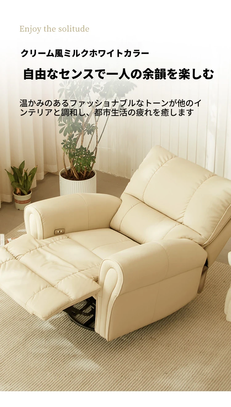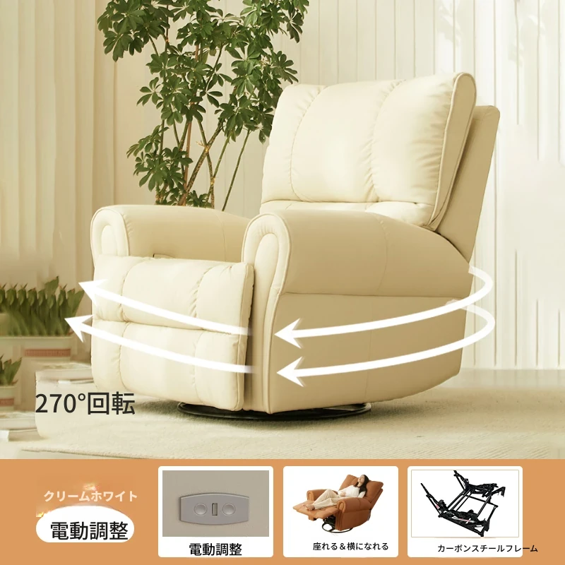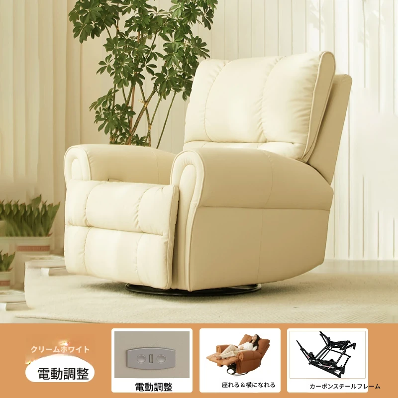 (クリームホワイト-キャットクラッチレザー)電動リクライニング+USB+回転