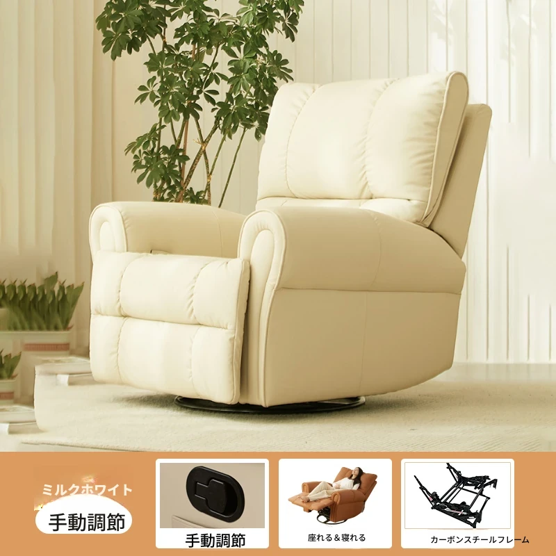 (クリームホワイト-キャットクラッチレザー)手動リクライニング+回転