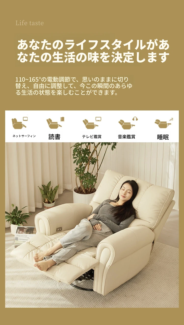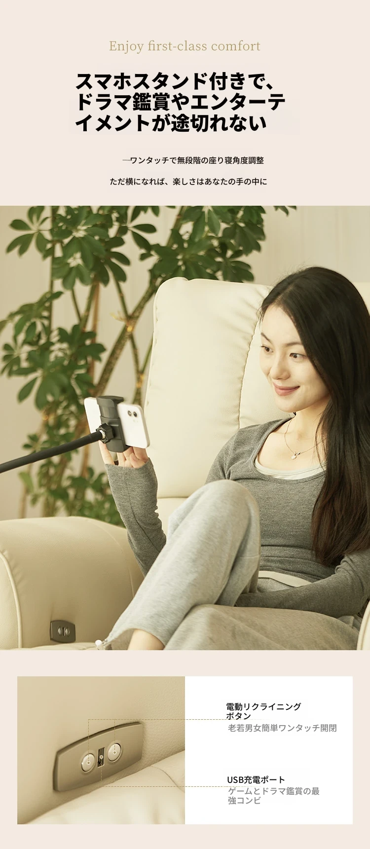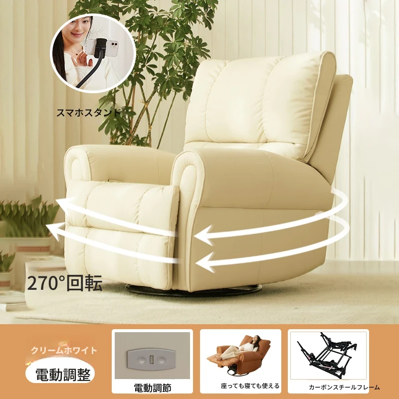 (クリームホワイト-キャットクラッチレザー)電動リクライニング+USB+回転+スマホスタンド