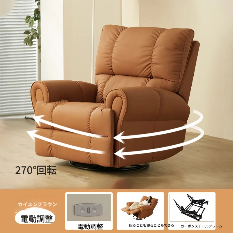 (カイエンブラウン-キャットクラッチレザー)電動リクライニング+USB+回転