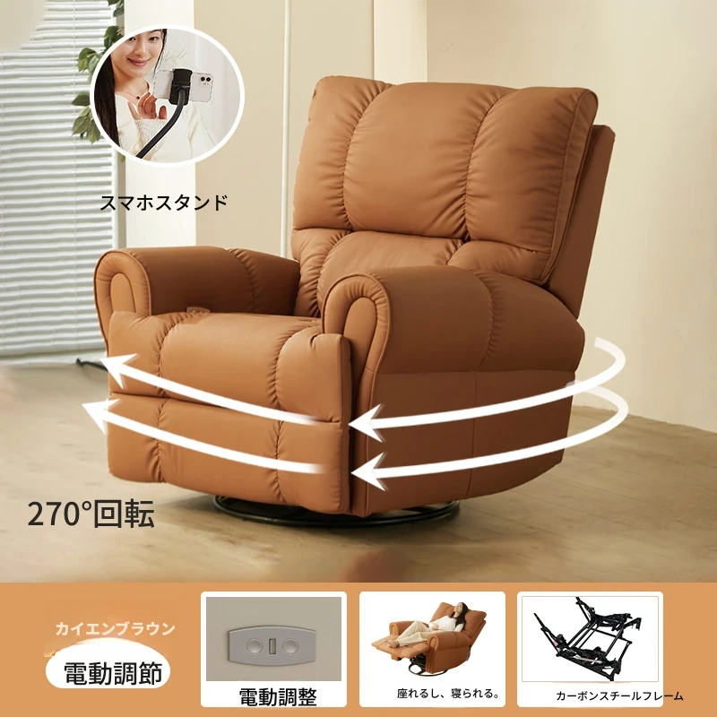 (カイエンブラウン-キャットクラッチレザー)電動リクライニング+USB+回転+スマホスタンド