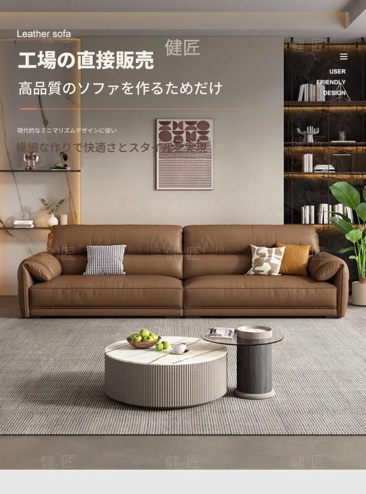 新作イタリアンミニマリズム本革ソファ - リビングに最適!サイズを問わないシンプルでモダンなデザイン、上質なトップレザー使用で、贅沢なひとときをお届けします。