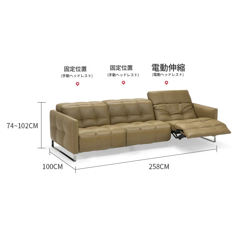 輸入牛革トリプルソファフル電動【電動ヘッドレスト】