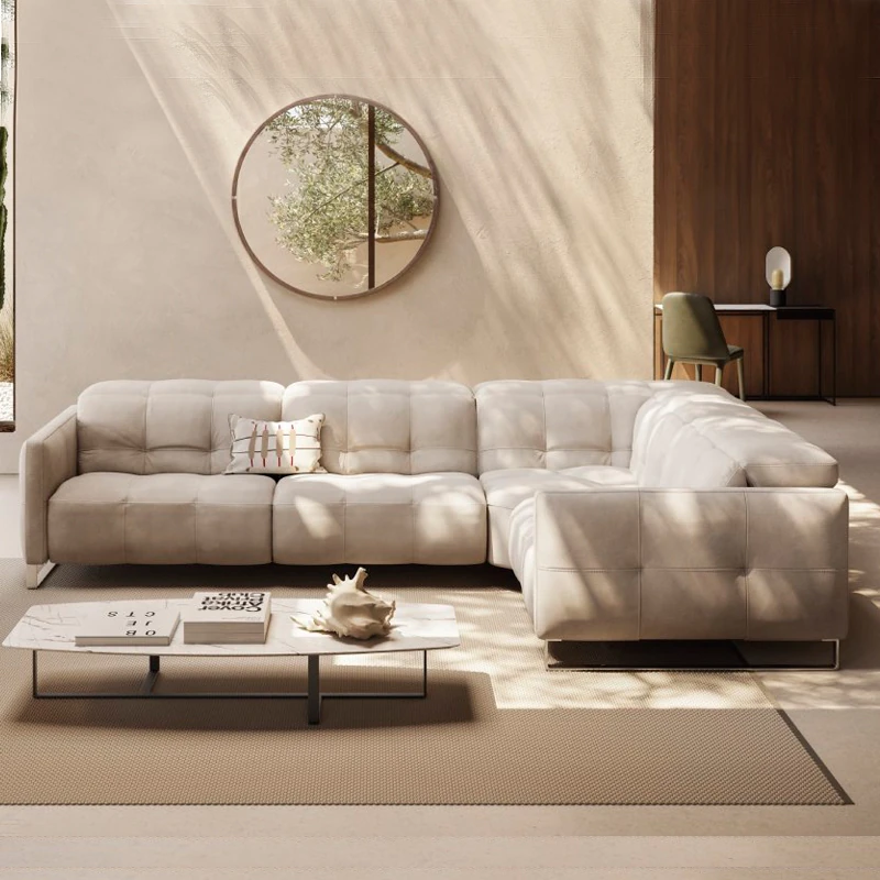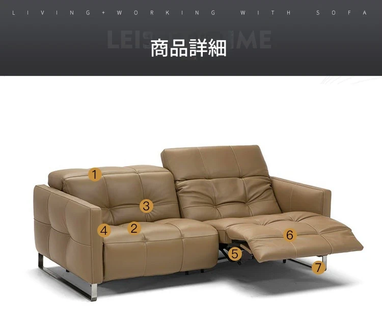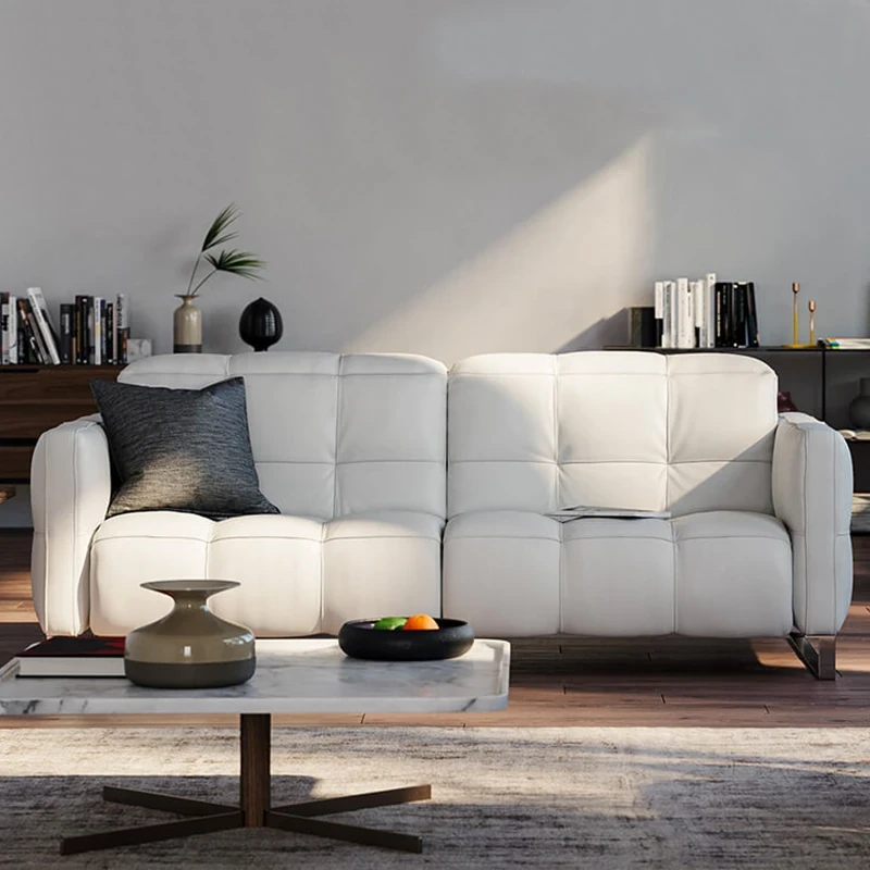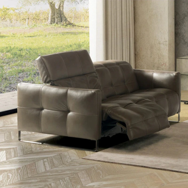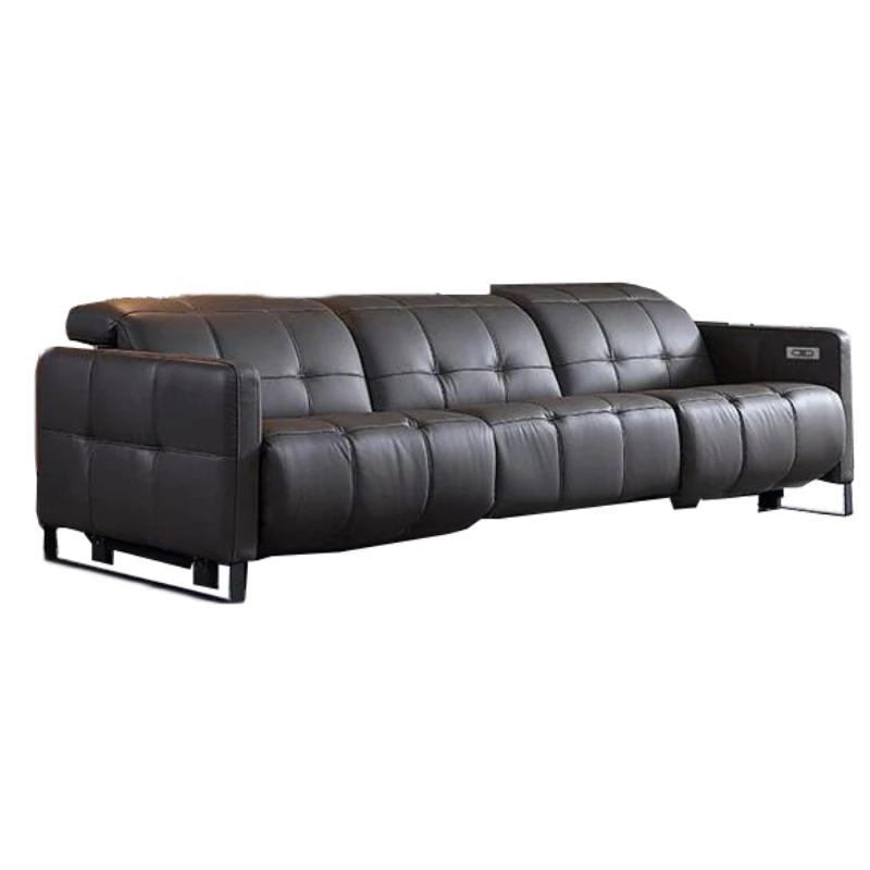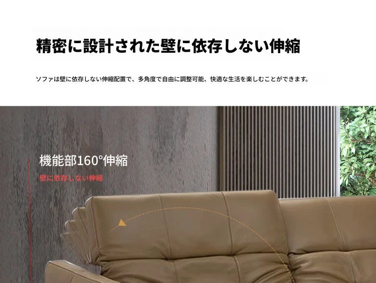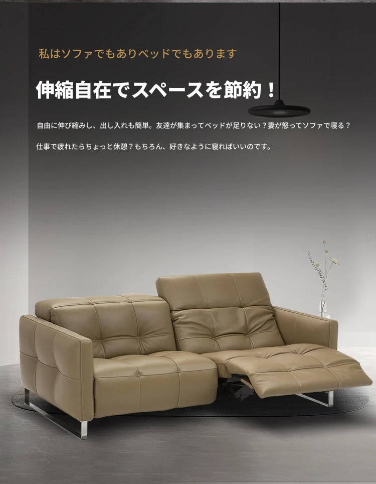 北欧スタイルのミニマリスト多機能本革電動ソファ - 半寝のリラックス設計、背もたれなしで壁際にぴったりフィット!贅沢な空間を演出するリビングソファ。