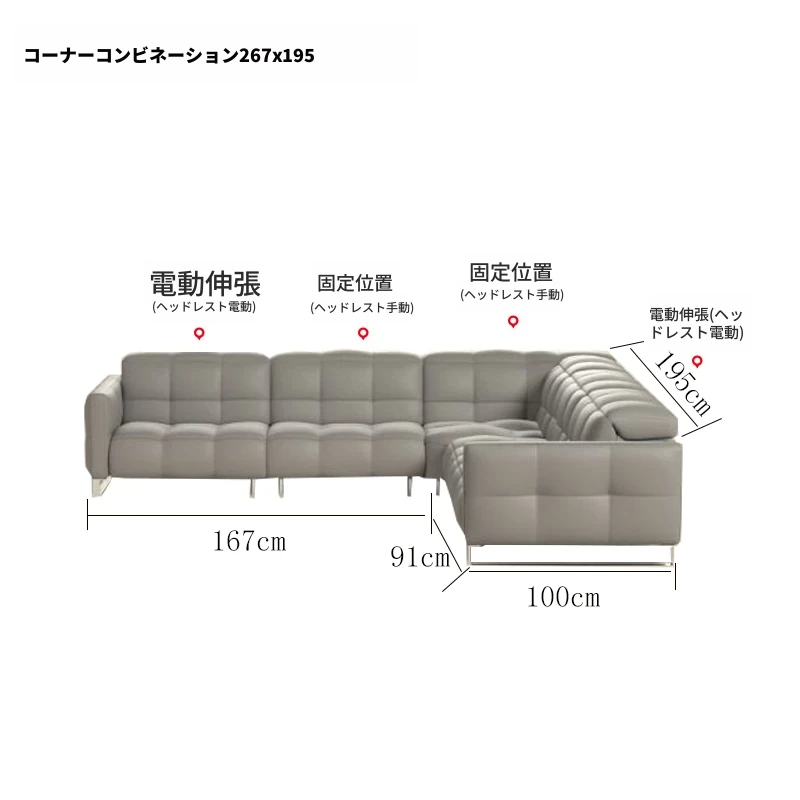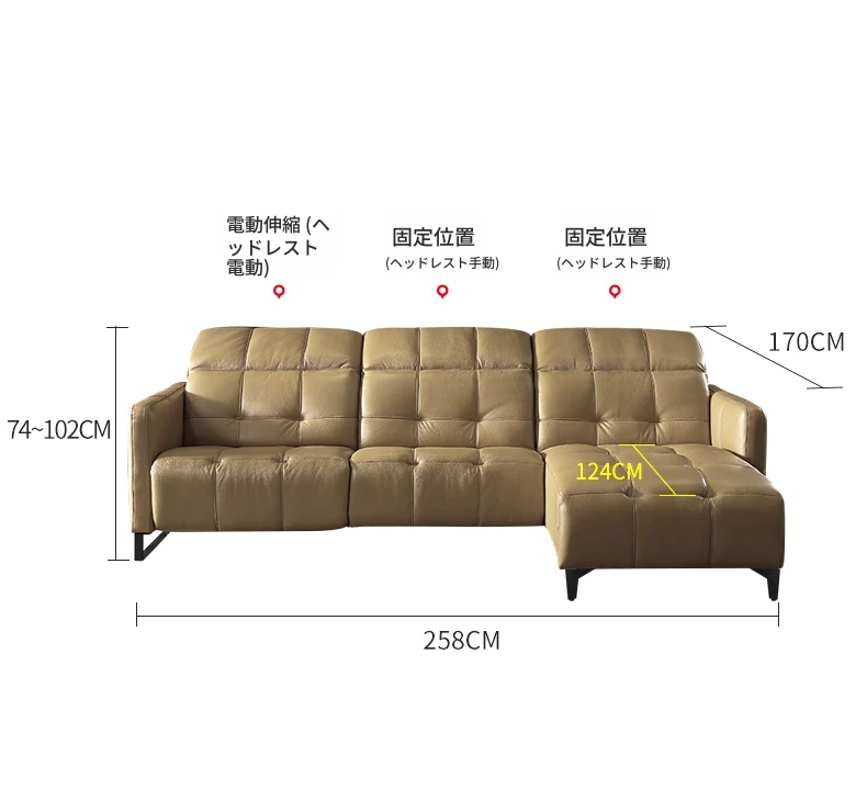 サイド電動+センター+カウチ/輸入牛革