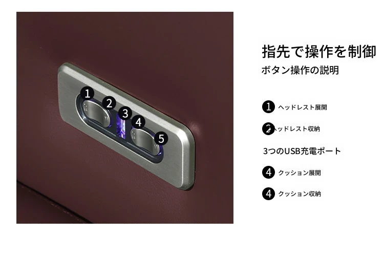 輸入牛革シングルソファ【電動ヘッドレスト】