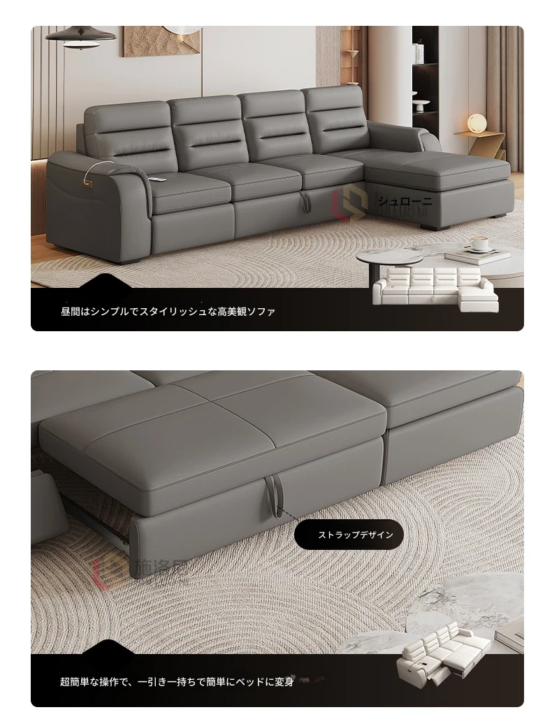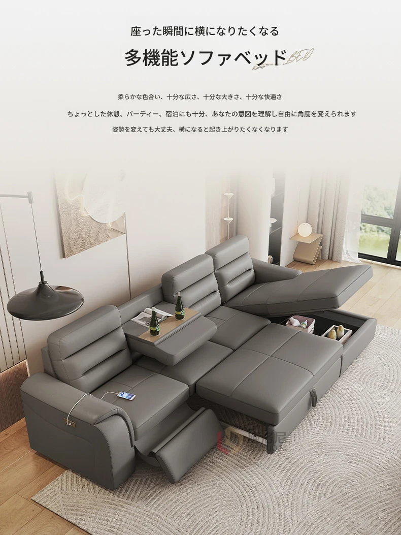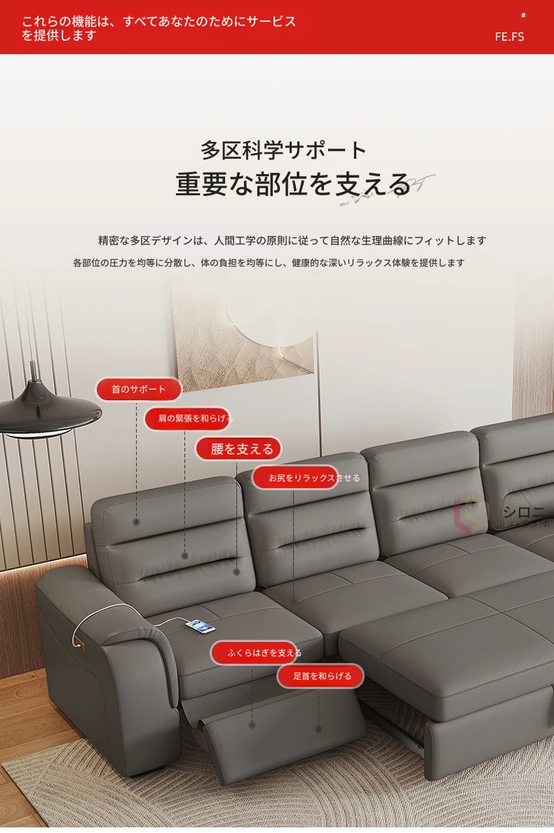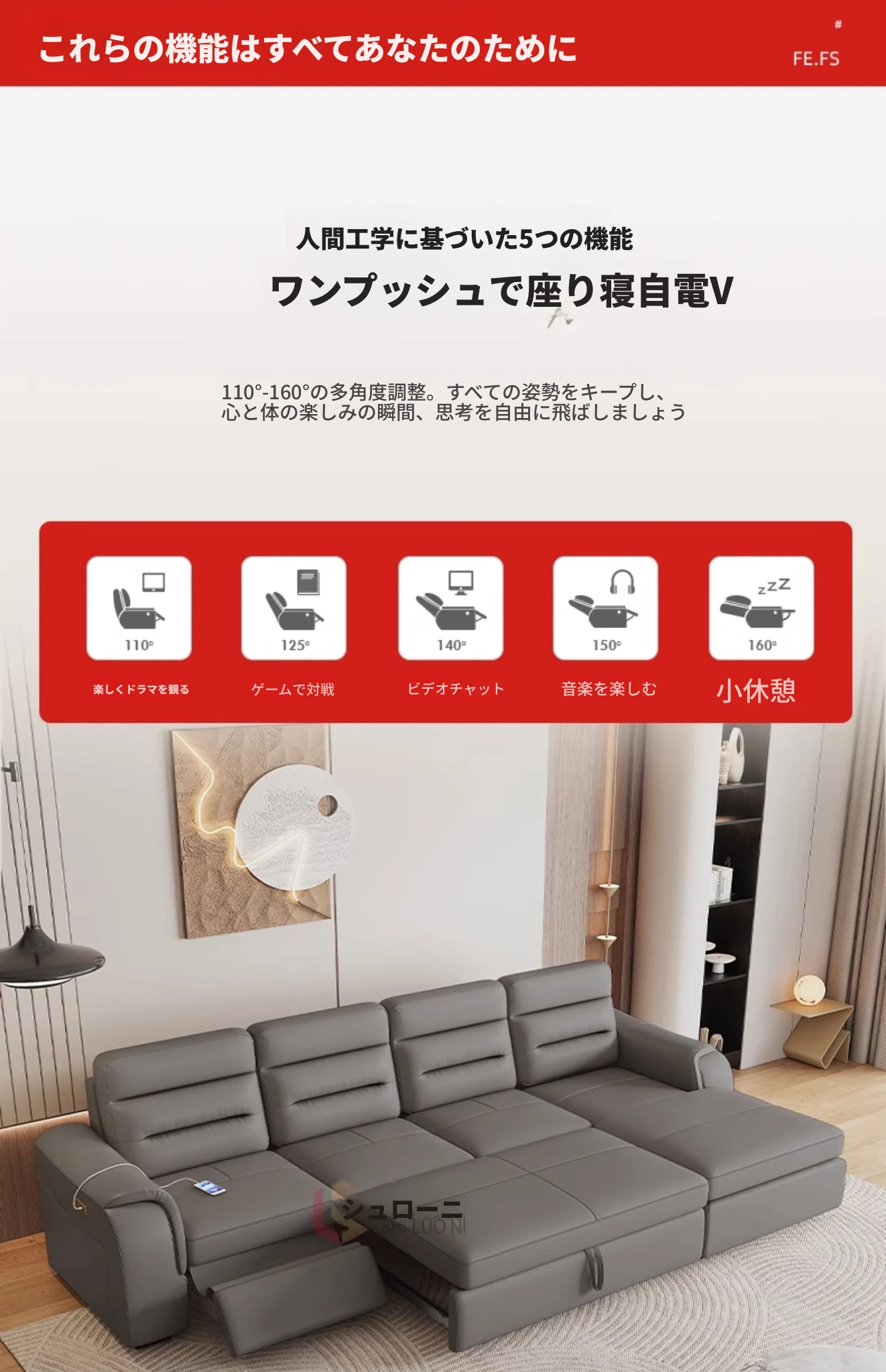 壁に寄りかからない電動機能ソファ!高級本革使用、贅沢なスペースカプセルデザイン。電動リクライニング機能付き、L字型の優雅なカウチベッド。快適な休息を提供する、まさに夢のソファ!