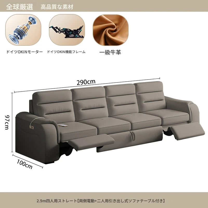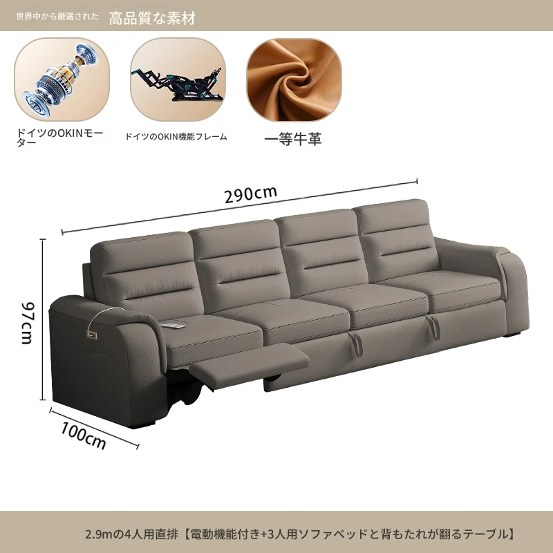 2.9m三人+カウチ【片側電動+二人用スライドベッド付き背面リフターコーヒーテーブル+カウチ収納】