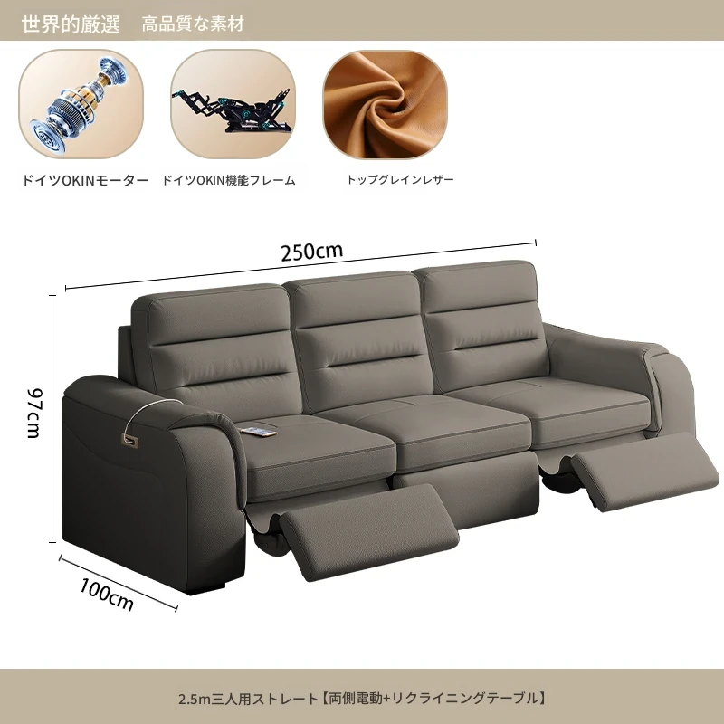 2.5m三人直列【両側電動+背面リフターコーヒーテーブル】