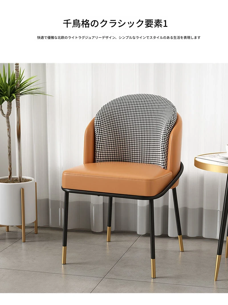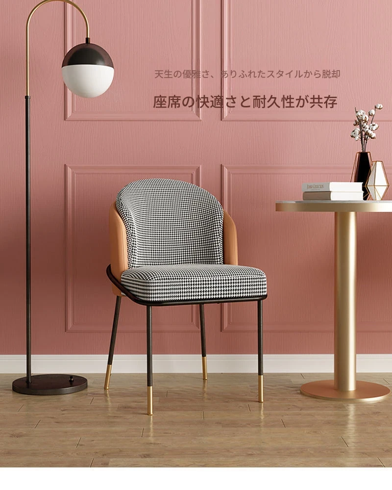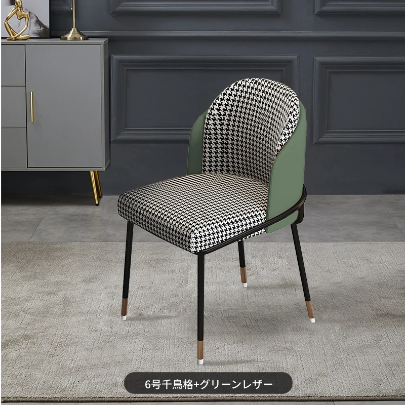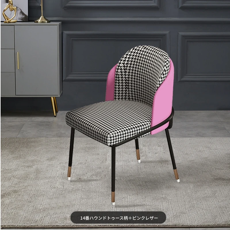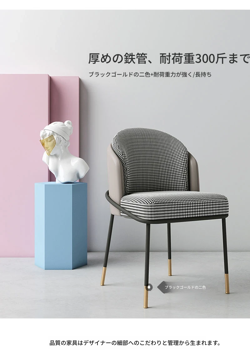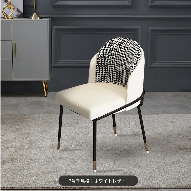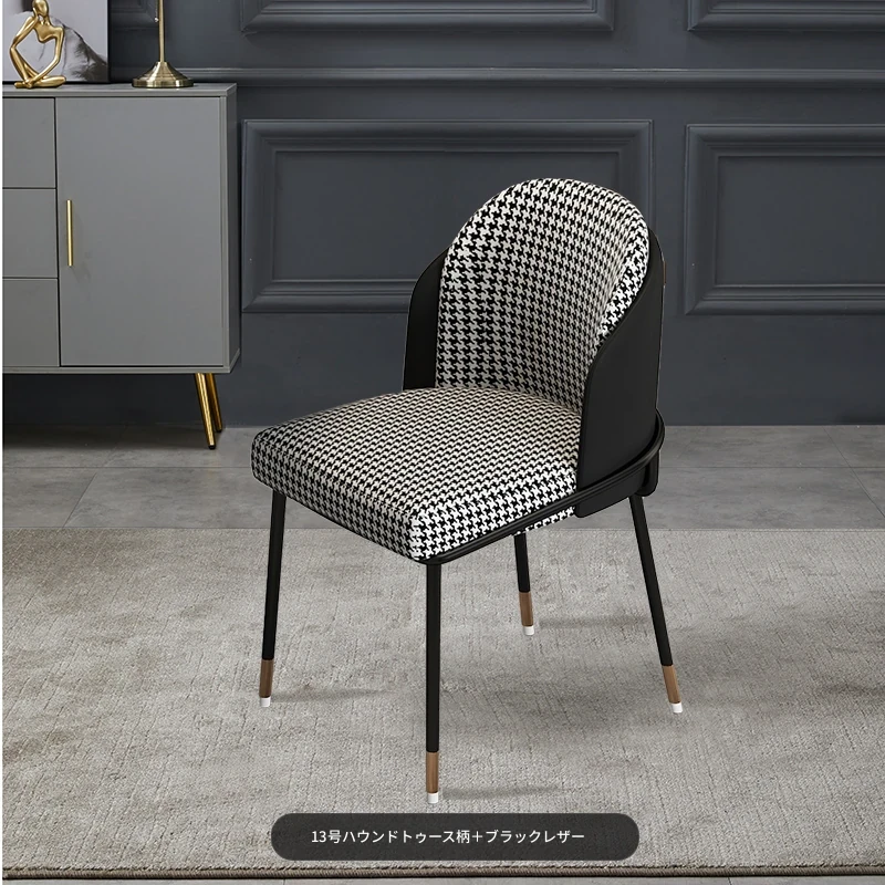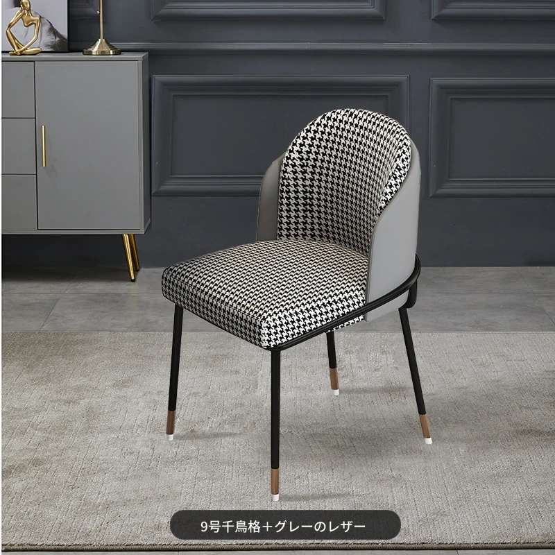 洗練されたデザインの軽奢ダイニングチェア|大人のためのトレンド感あふれるネイル用背もたれ椅子|シンプルモダンなデスク&ミーティングチェア|千鳥格子のスタイリッシュメイクスツール
