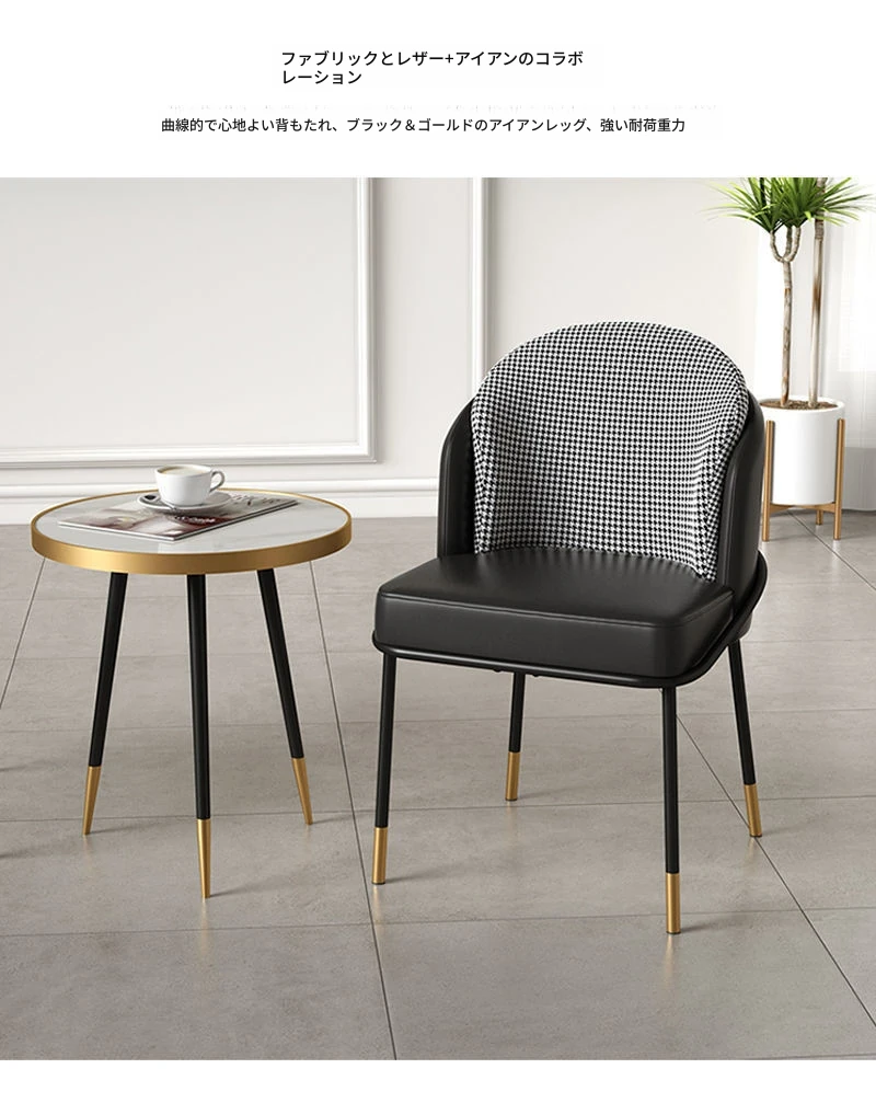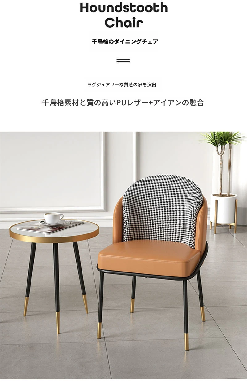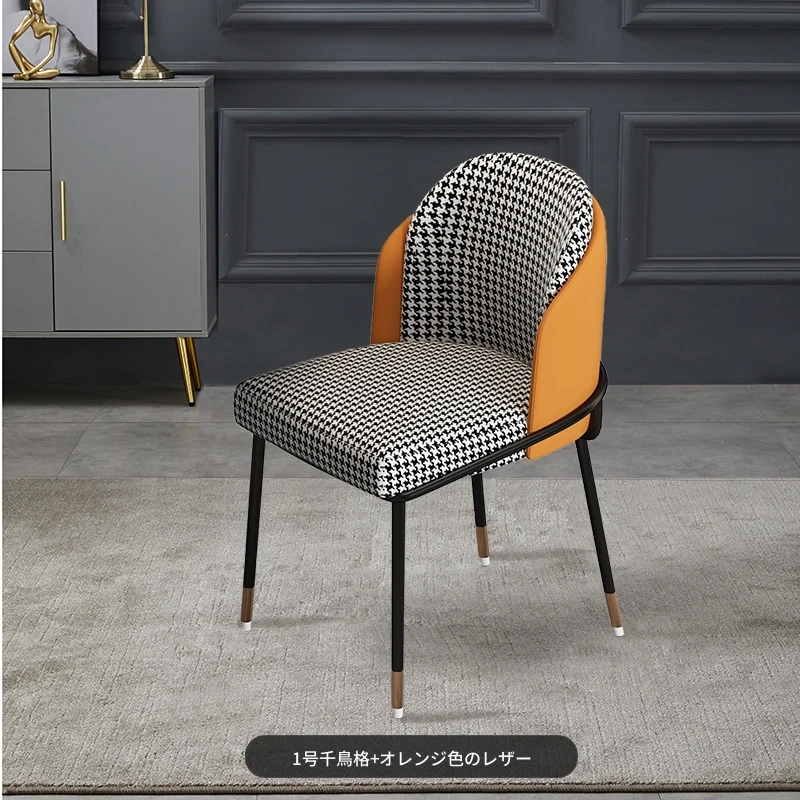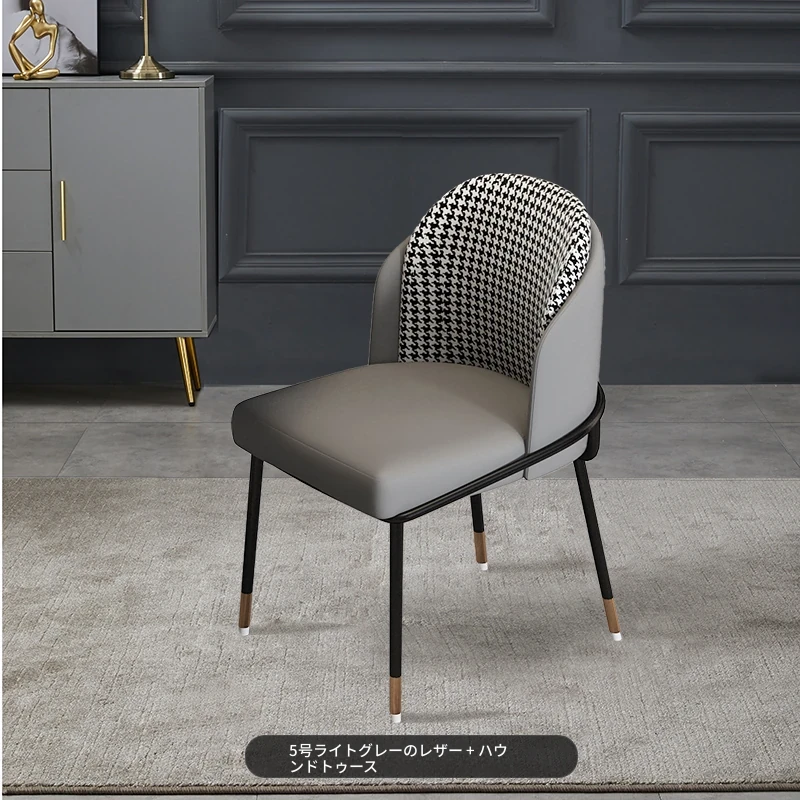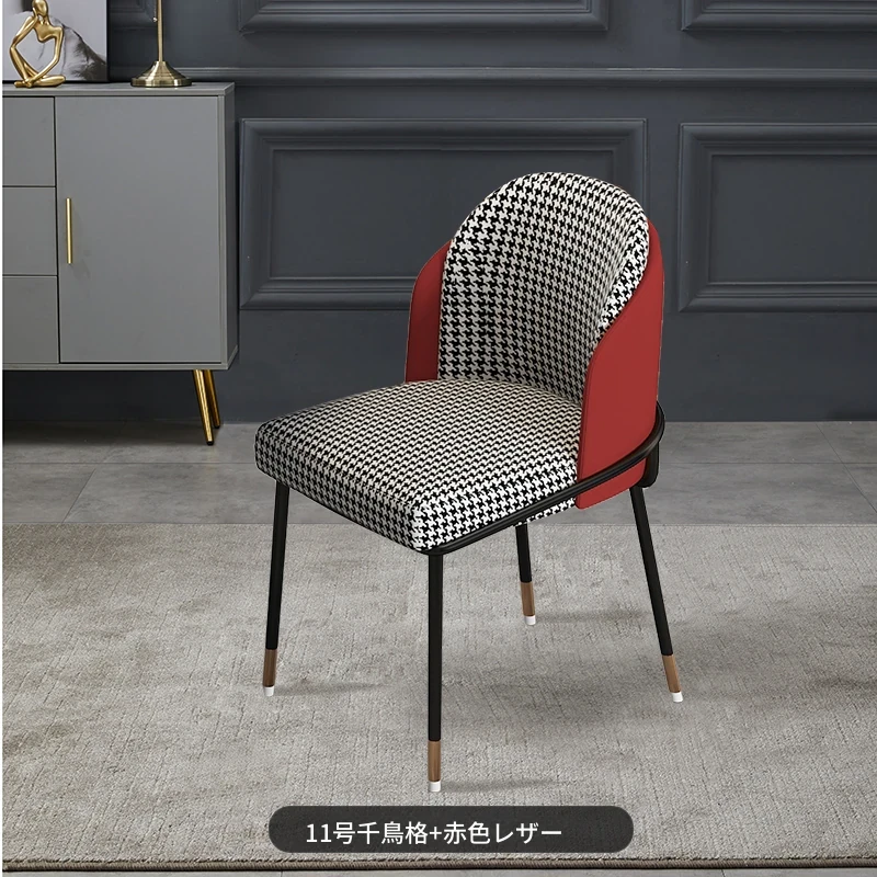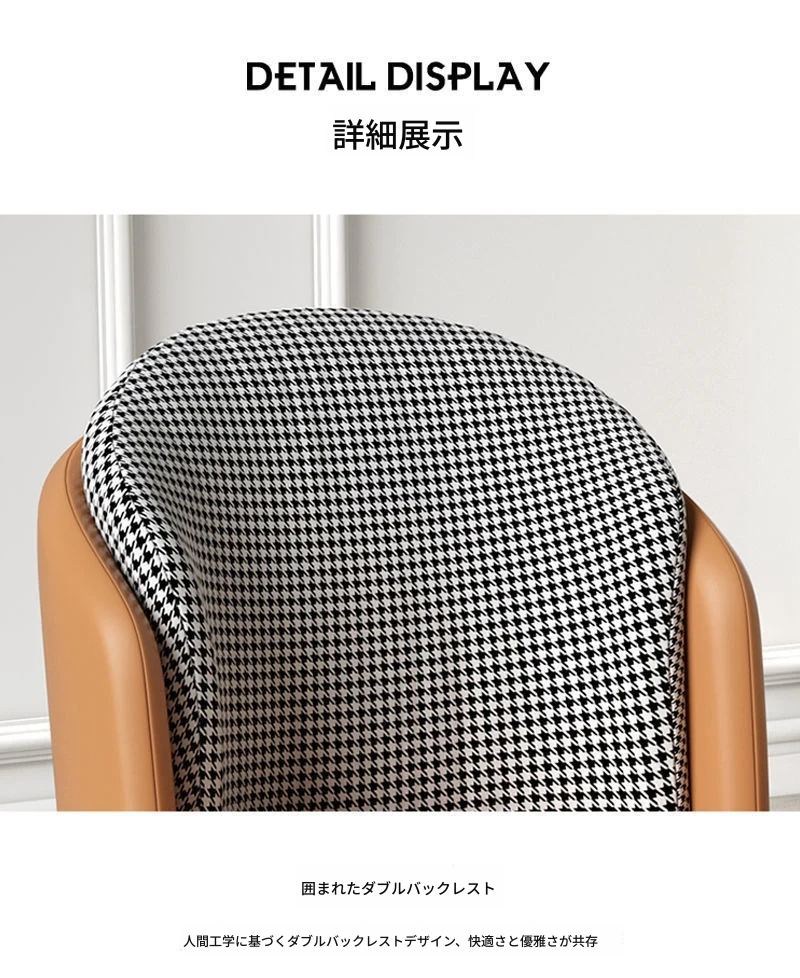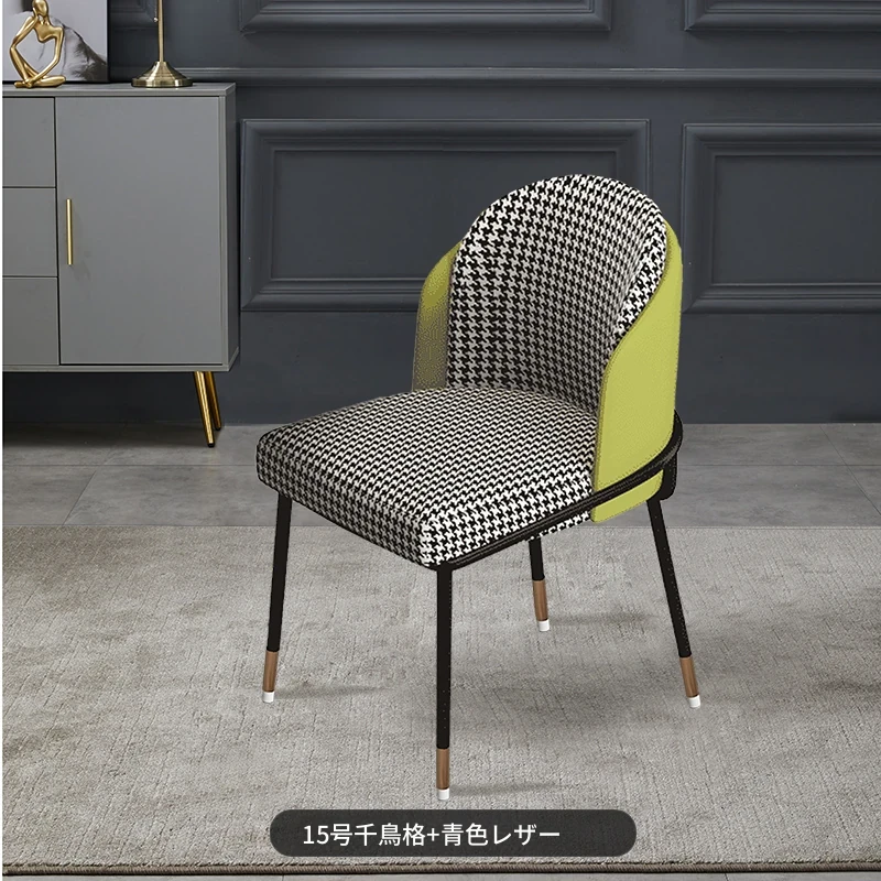 洗練されたデザインの軽奢ダイニングチェア|大人のためのトレンド感あふれるネイル用背もたれ椅子|シンプルモダンなデスク&ミーティングチェア|千鳥格子のスタイリッシュメイクスツール