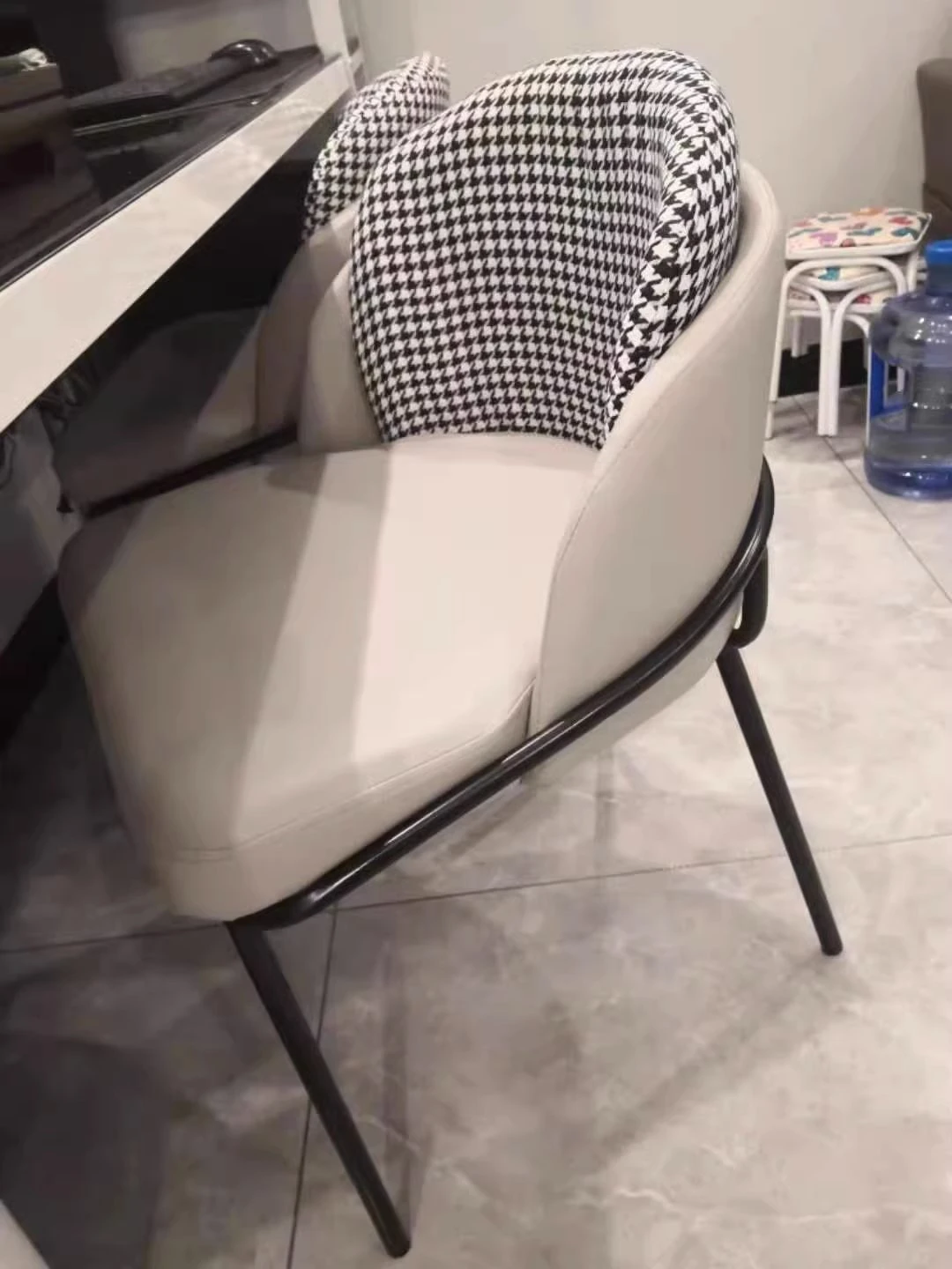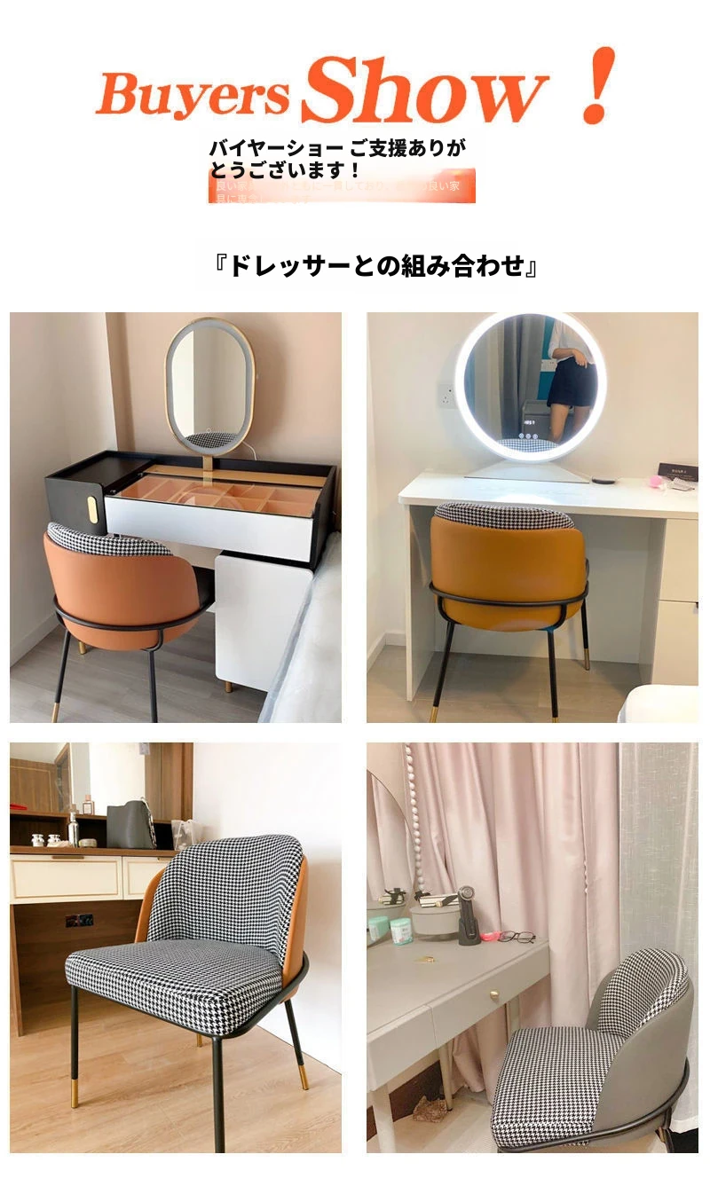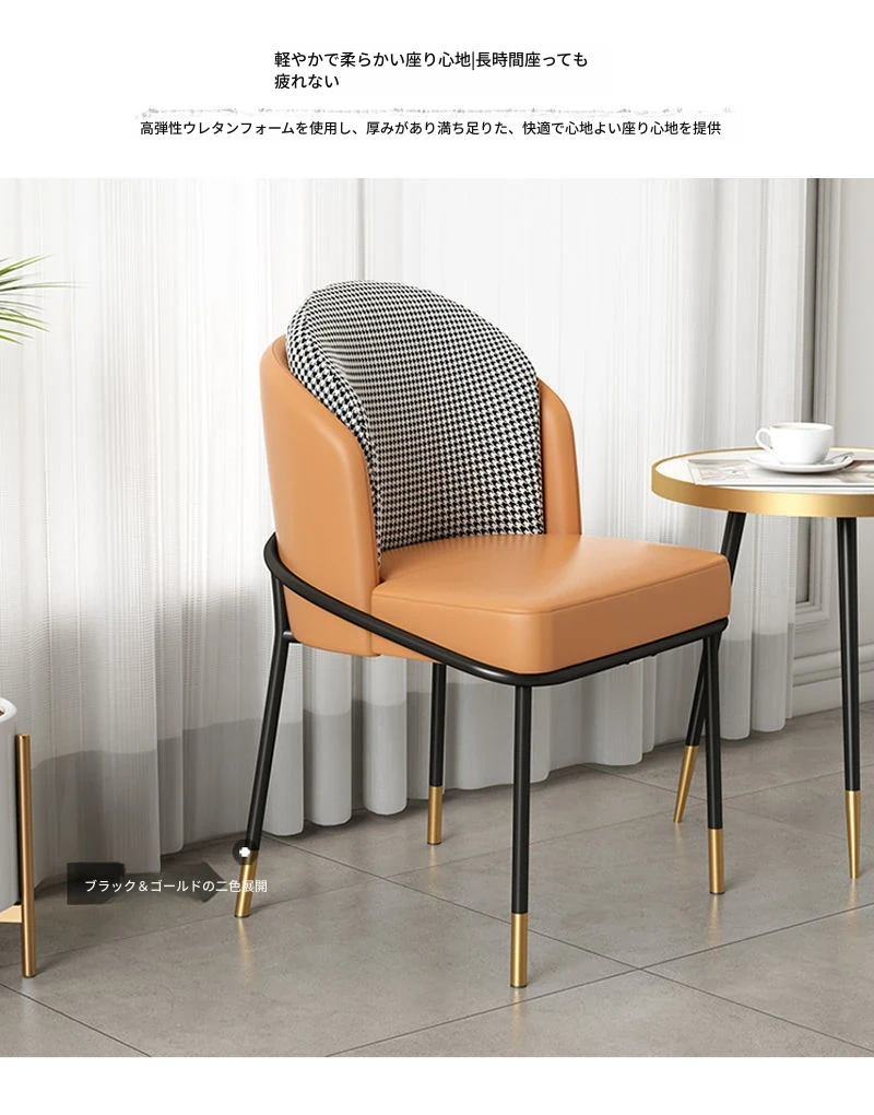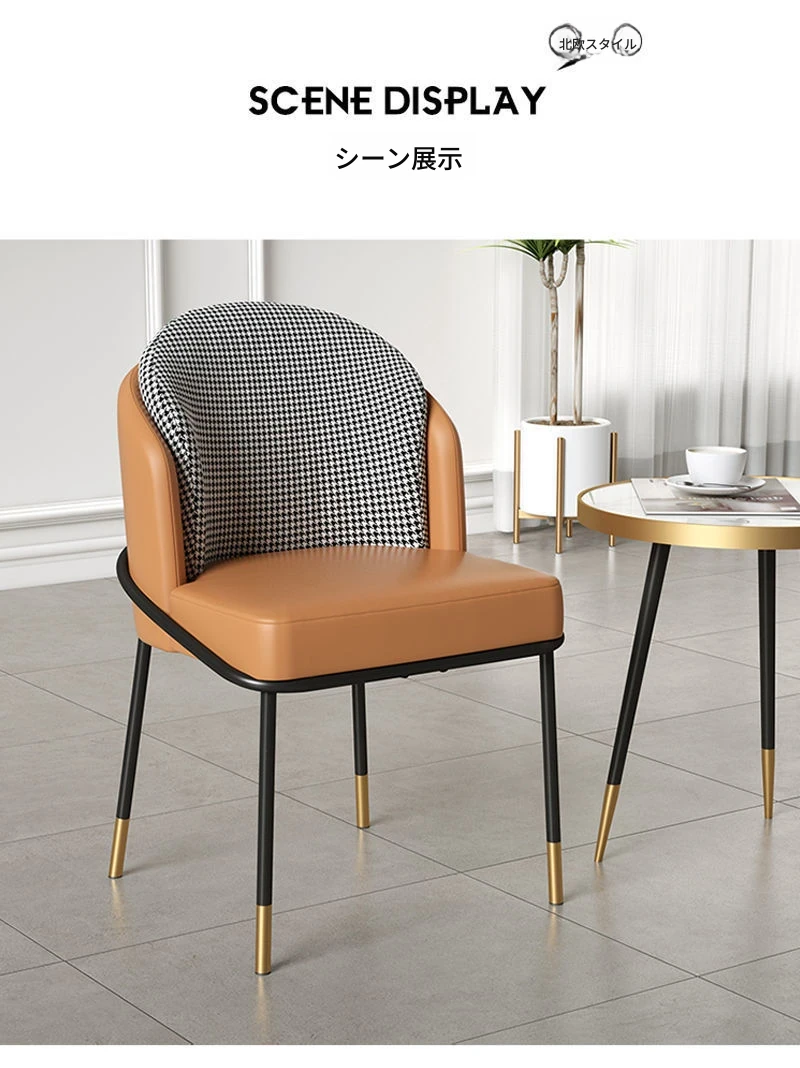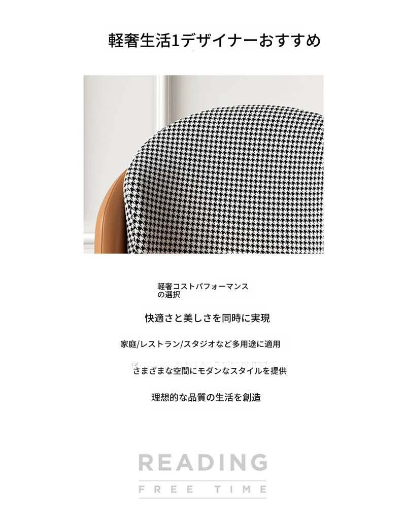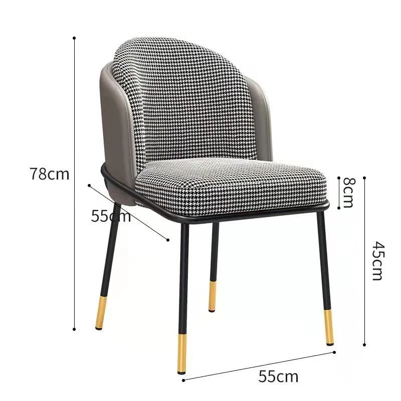 洗練されたデザインの軽奢ダイニングチェア|大人のためのトレンド感あふれるネイル用背もたれ椅子|シンプルモダンなデスク&ミーティングチェア|千鳥格子のスタイリッシュメイクスツール