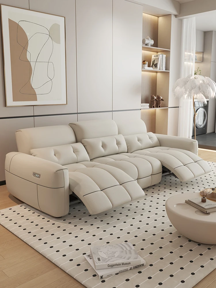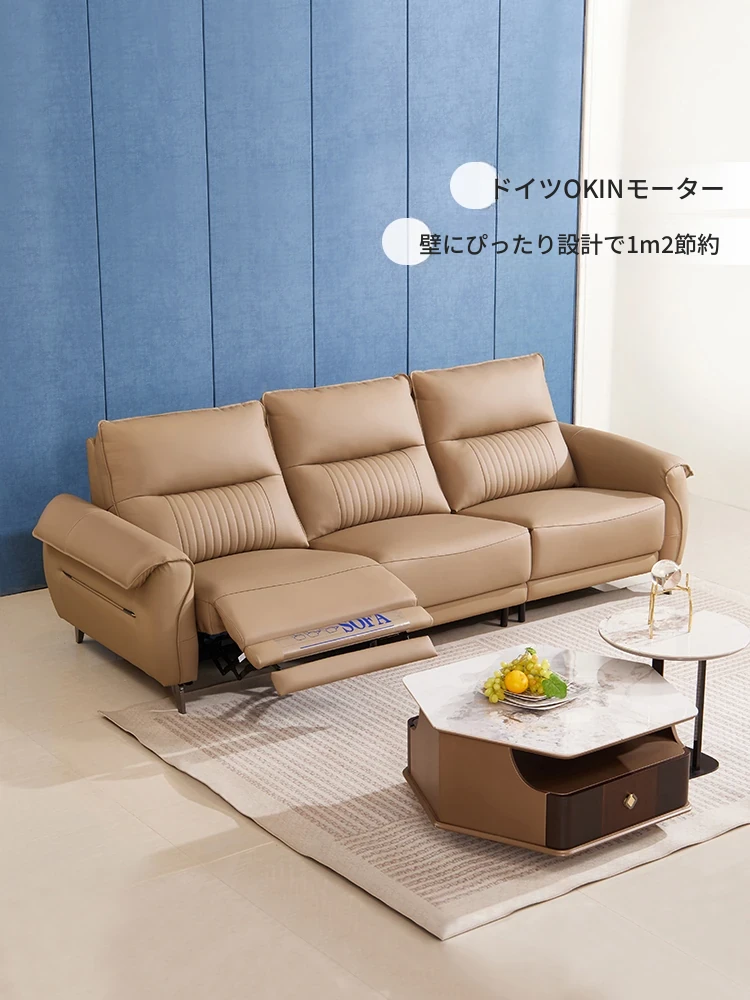 クリーム風電動ソファ モダンミニマリスト デザイン 高級レザー使用 家庭用リビング向け 本革ファーストクラス機能付きソファで、快適なリラックスタイムをお楽しみください!