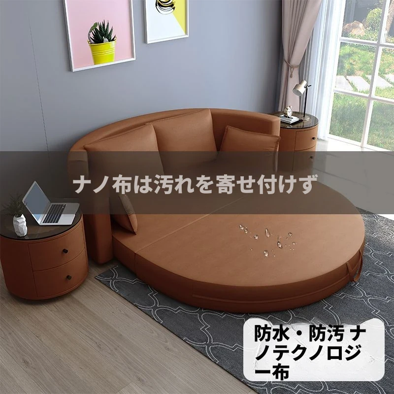洗濯不要!折りたたみ式の円形ソファベッド - モダンな小型住宅に最適な多機能ファブリックソファ!創造的なデザインで、スペースを有効活用し、快適な眠りとくつろぎを提供します。
