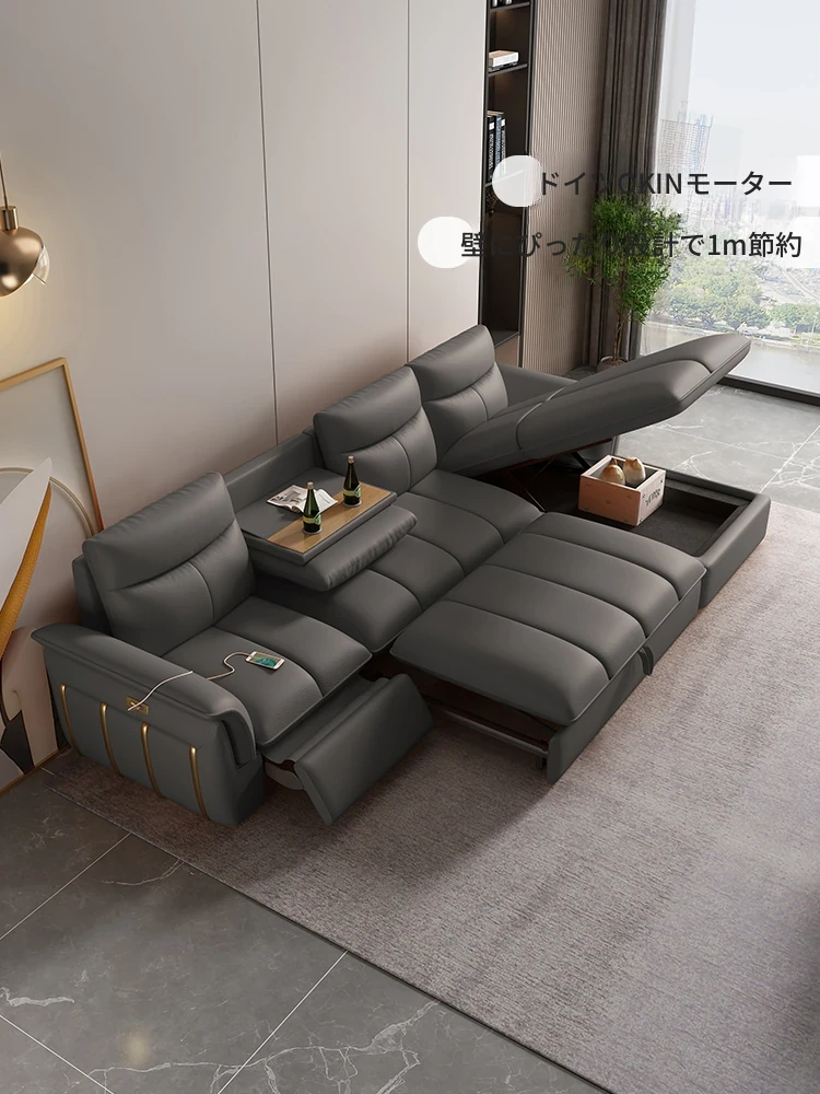 多機能電動ソファベッド|3〜4人用の本革ソファベッド|リクライニング機能付き|フットレスト収納付き|スタイリッシュなデザインで快適なひとときを実現!