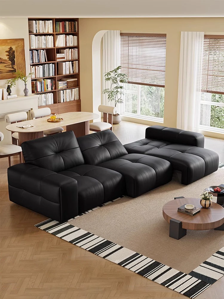 QDKT電動伸縮機能付きソファ|本革製エレファントイヤーデザイン|2WAYソファベッド|モダンリビングにぴったりなピアノキー風スタイル!
