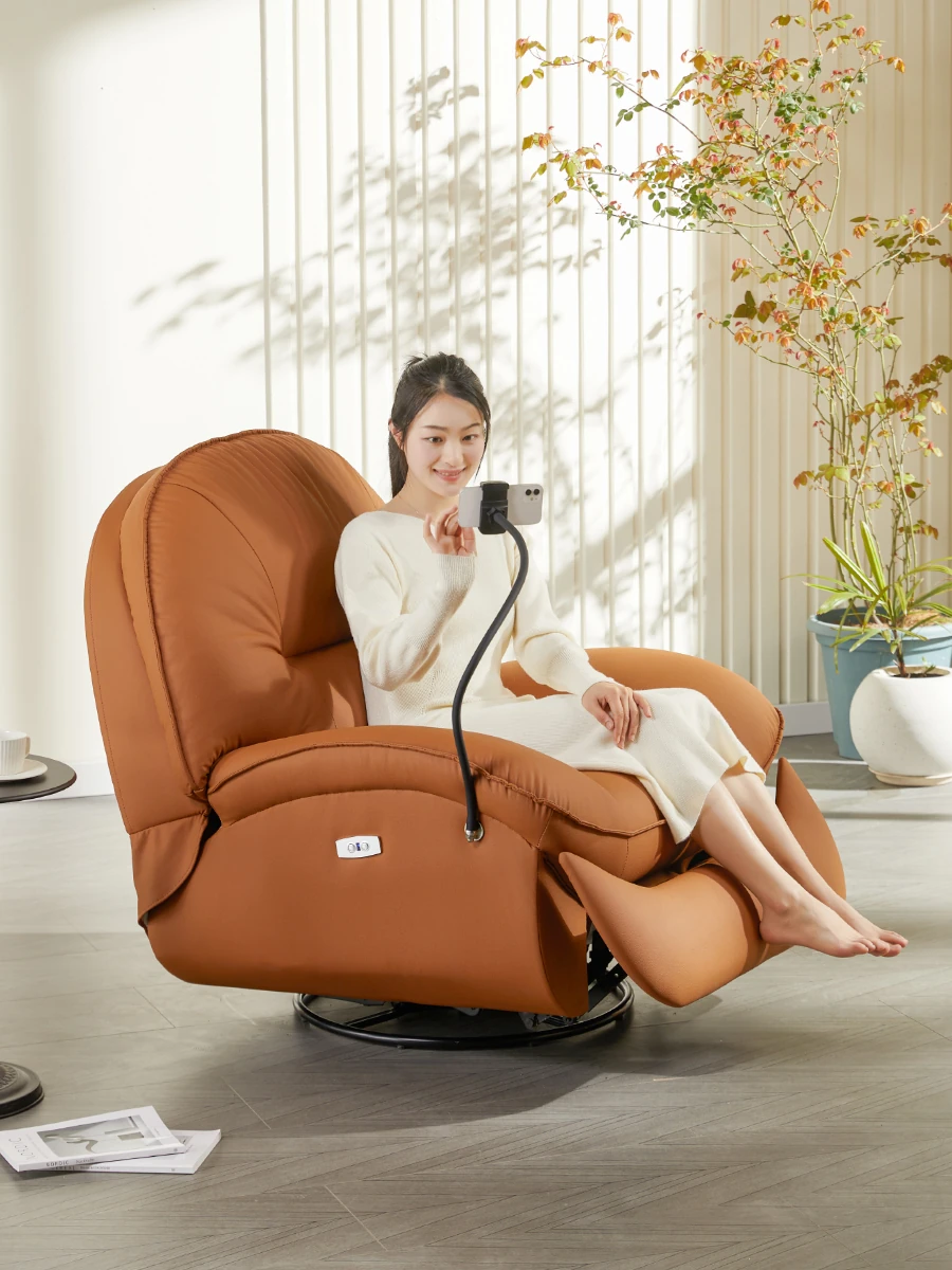 本革製のリクライニング可能なエグゼクティブ宇宙ソファ、シングル用のラウンジチェア!リビングルームでの昼寝に最適な多機能回転バルコニーチェア。極上のリラックス体験をあなたに!